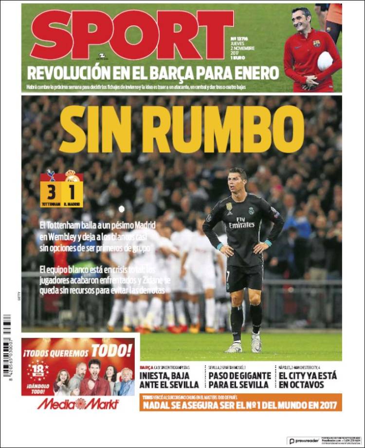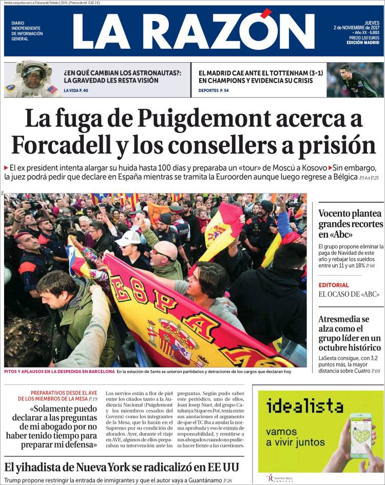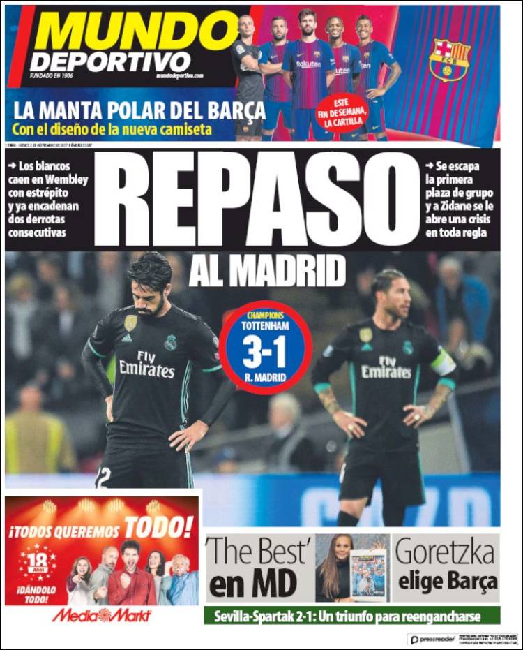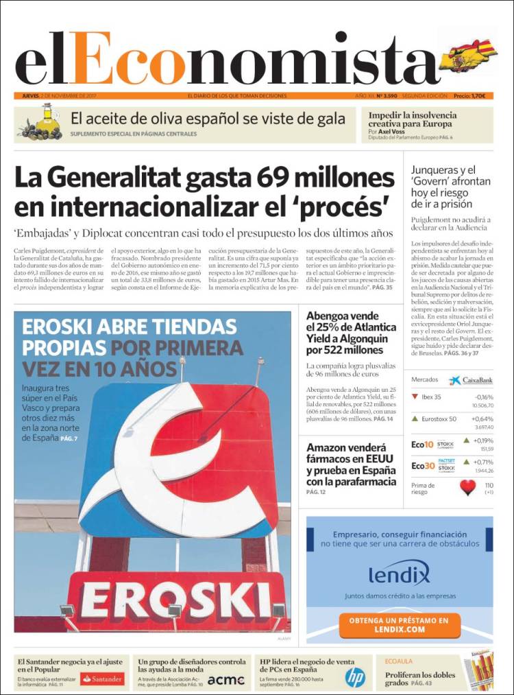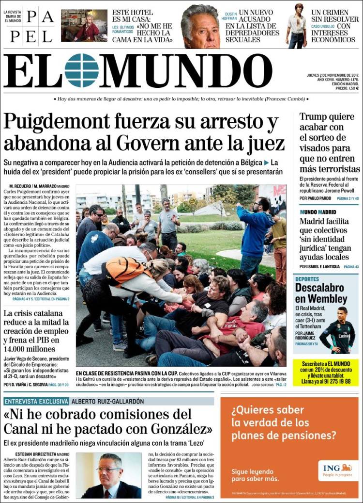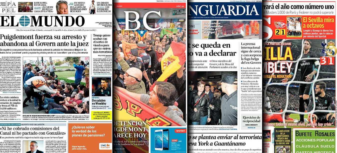 Portadas de los diarios El Mundo, El País, ABC, La Razón, La Vanguardia, El Periódico, Cinco Días, El Economista, Marca, As, Mundo Deportivo y Sport.
