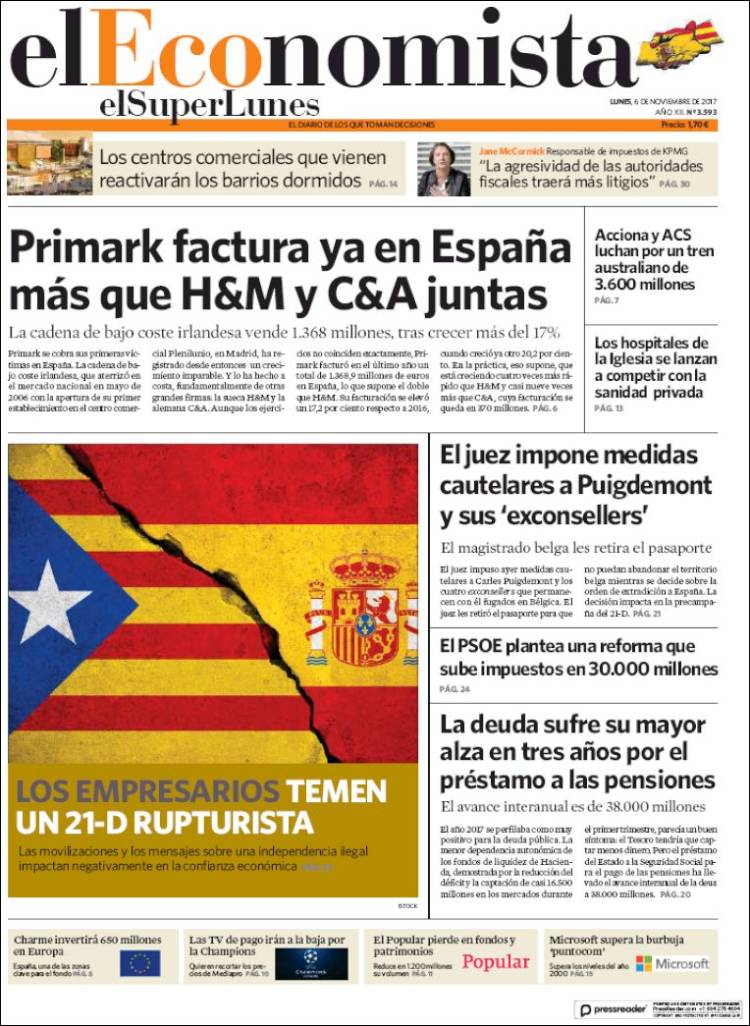 Portadas de los diarios El Mundo, El País, ABC, La Razón, La Vanguardia, El Periódico, Cinco Días, El Economista, Marca, As, Mundo Deportivo y Sport.