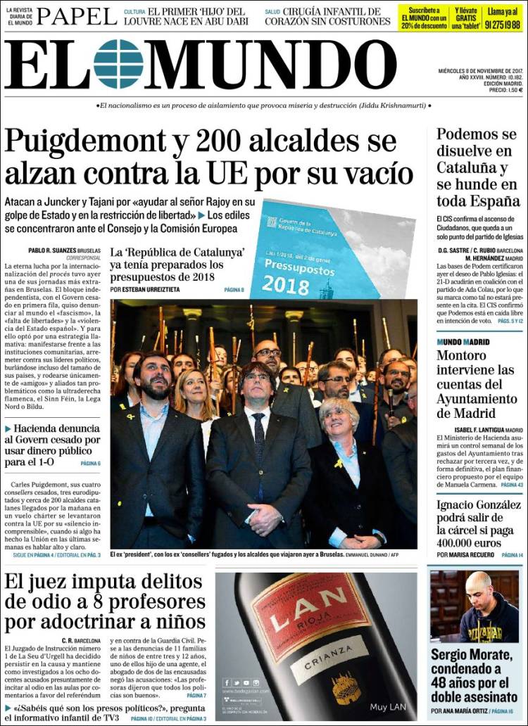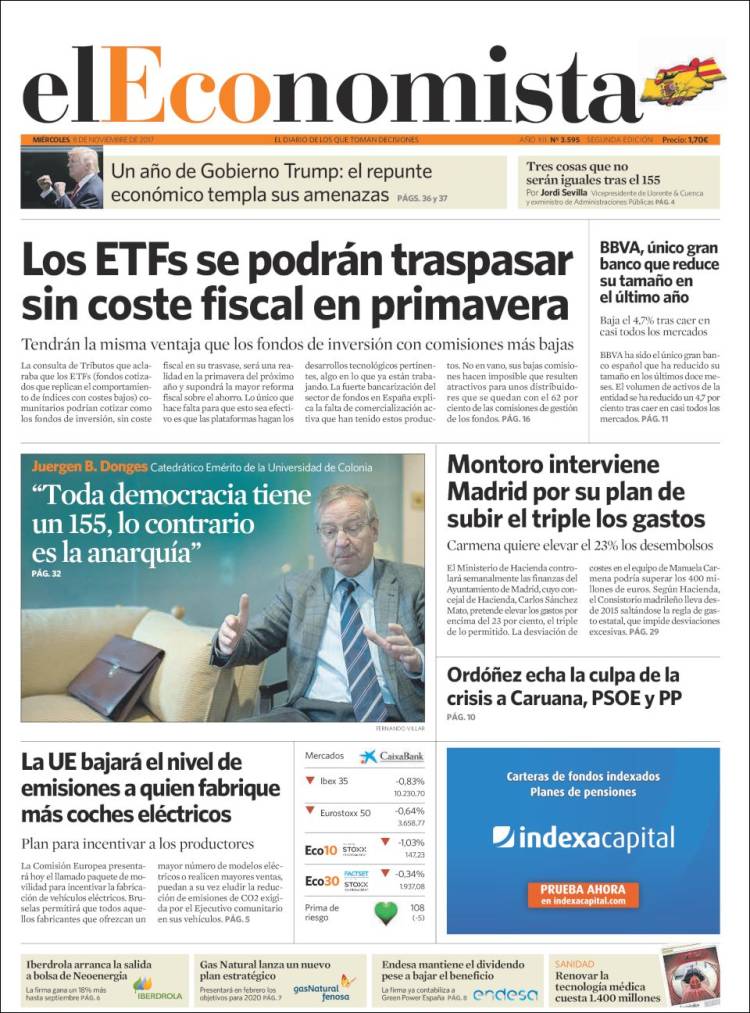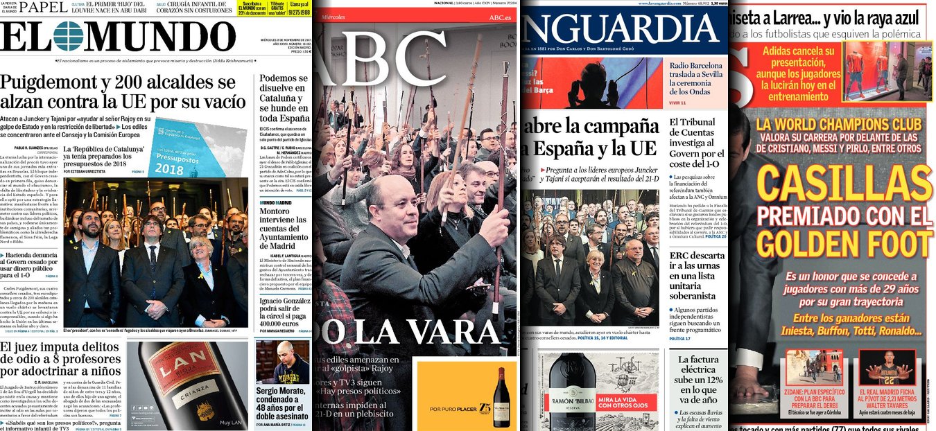 Portadas de los diarios El Mundo, El País, ABC, La Vanguardia, El Periódico, Cinco Días, El Economista, Marca, As, Mundo Deportivo y Sport.