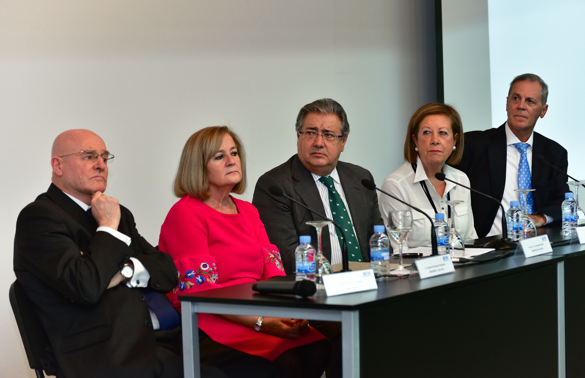 En la mesa, junto al ministro del Interior, Juan Ignacio Zoido, la presidenta de la Asociación, Ángeles Domíngez y la vicepresidenta de la asociación, Angelines Coca.