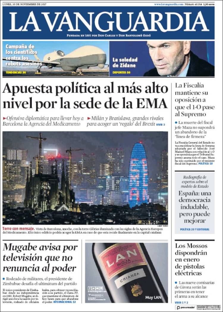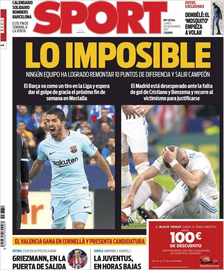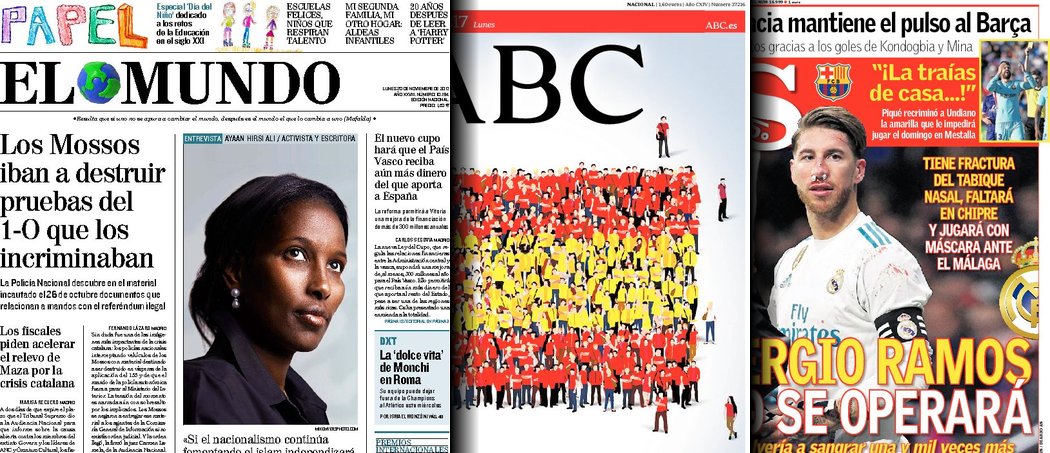 Portadas de los diarios El Mundo, El País, ABC, La Vanguardia, El Periódico, Cinco Días, El Economista, Marca, As, Mundo Deportivo y Sport.