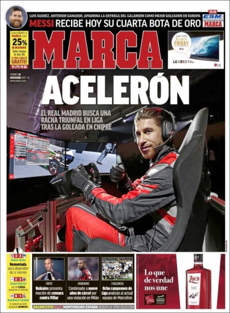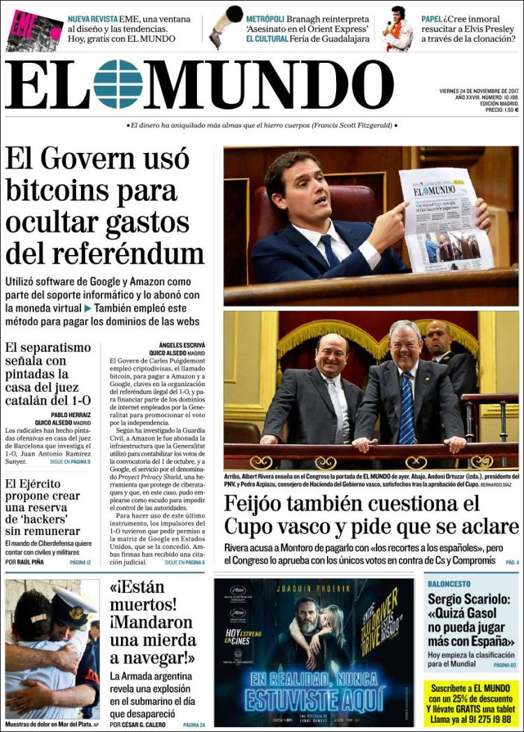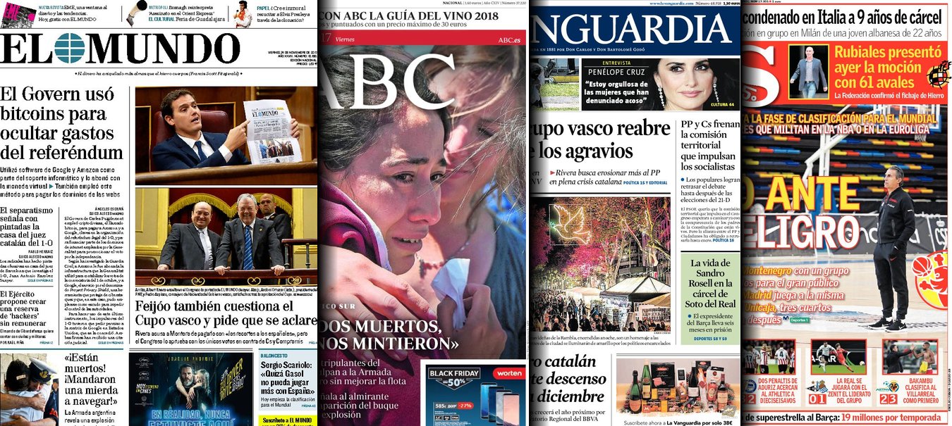Portadas de los diarios El Mundo, El País, ABC, La Vanguardia, El Periódico, Cinco Días, El Economista, Marca, As, Mundo Deportivo y Sport.