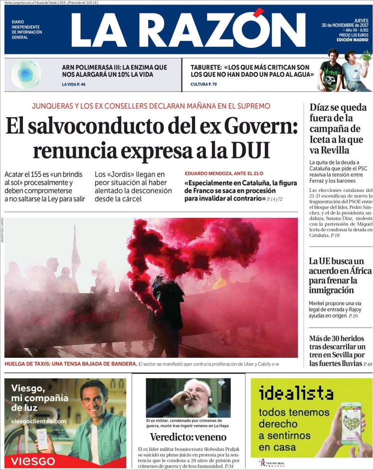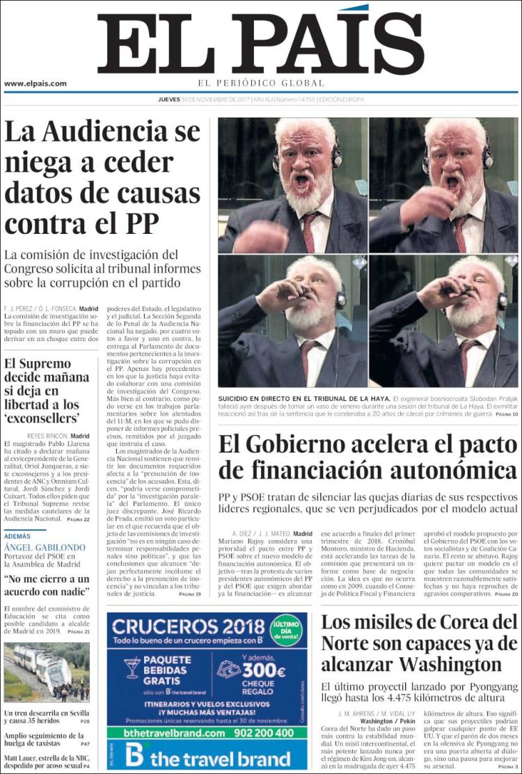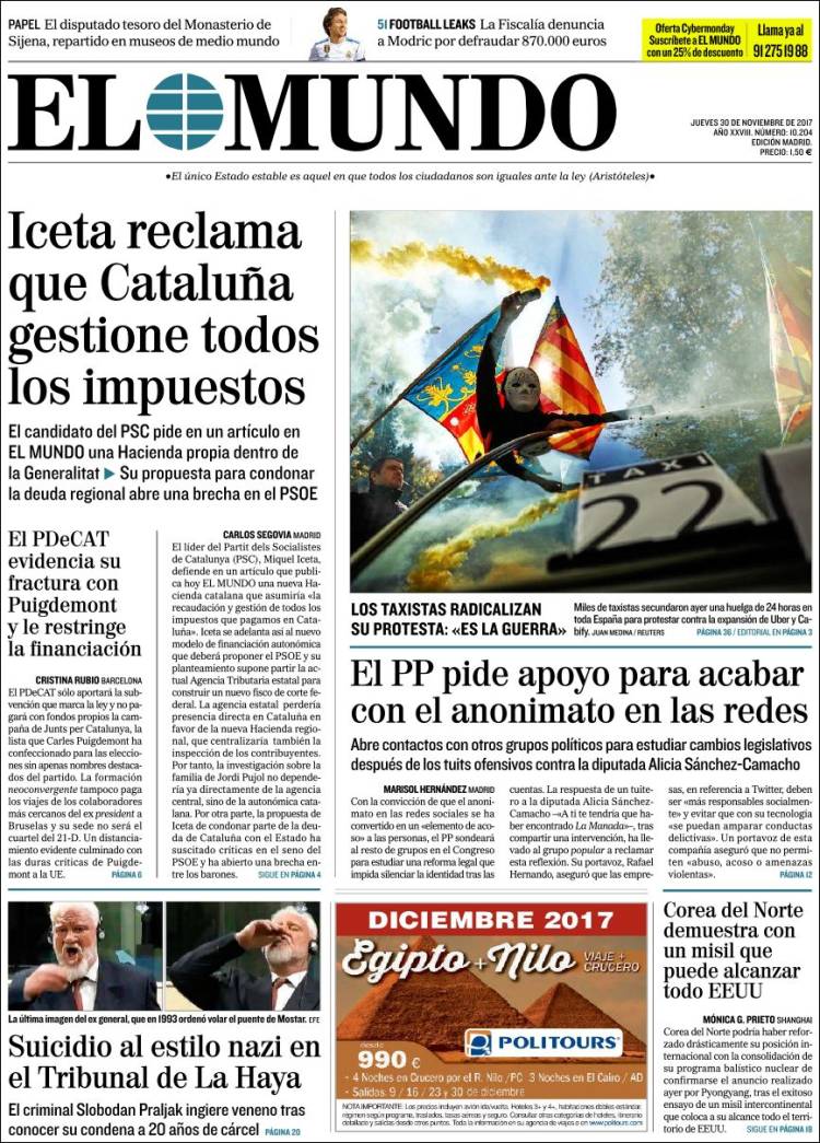 Los restaurantes exclusivos en los que se reunía la trama Koldo: este es el precio del jamón y las gambas Paco Cobos | Pablo Pardo Devastación, cenizas y montes arrasados: así queda el país tras los incendios Paula Gil 0 comentarios VerOcultar todos los comentarios Secciones Portada Opinión España Andalucía Madrid Canarias Valencia Internacional Defensa Corazón Viajar y Comer Deportes Sucesos Cultura Libros Cine Series Tecnociencia Salud Vídeos Fotos Canales Servicios Me lo compro Yo quiero uno Tráfico Precio gasolineras Radares El Tiempo Gestiona tu patrimonio Participación Móviles Boletines RSS Versión accesible Últimas noticias Archivo Hemeroteca Personajes Lugares Empresas Organismos Temas Eventos LD Redes Facebook X Instagram YouTube WhatsApp Telegram