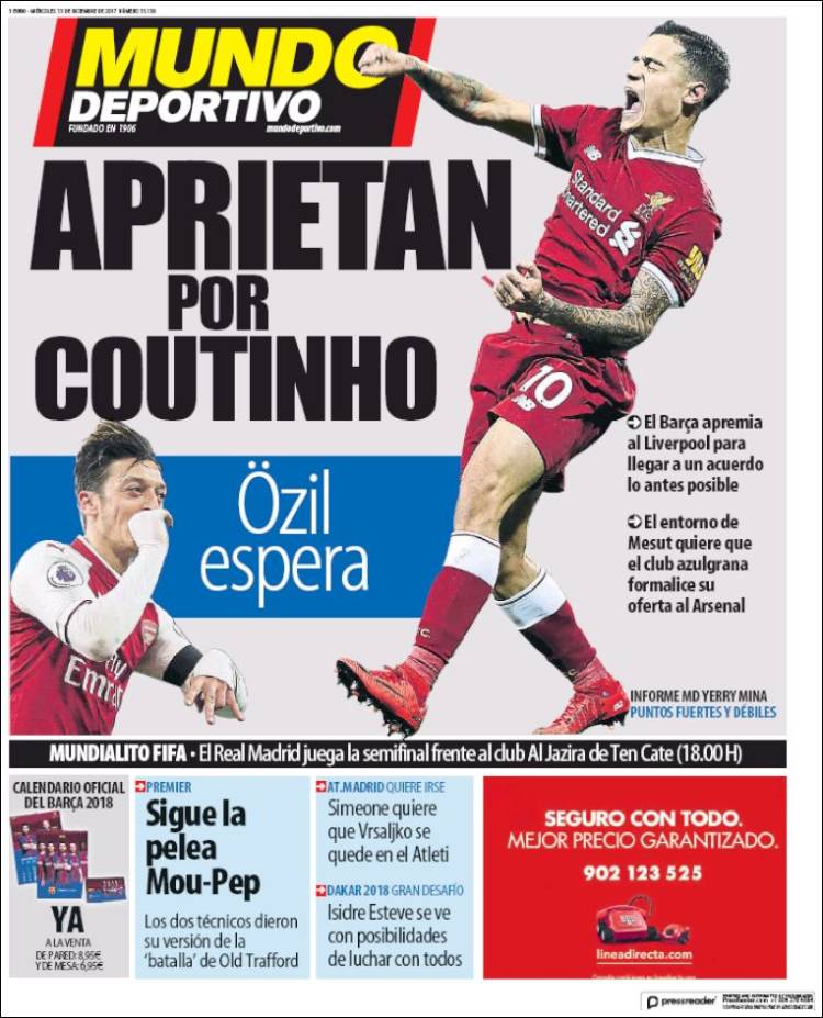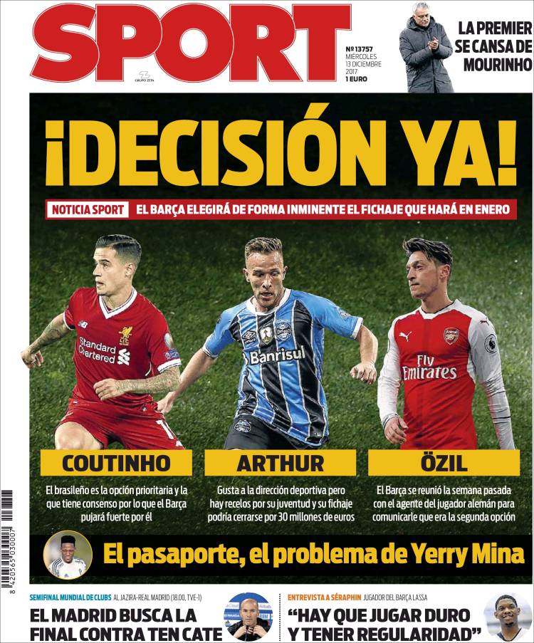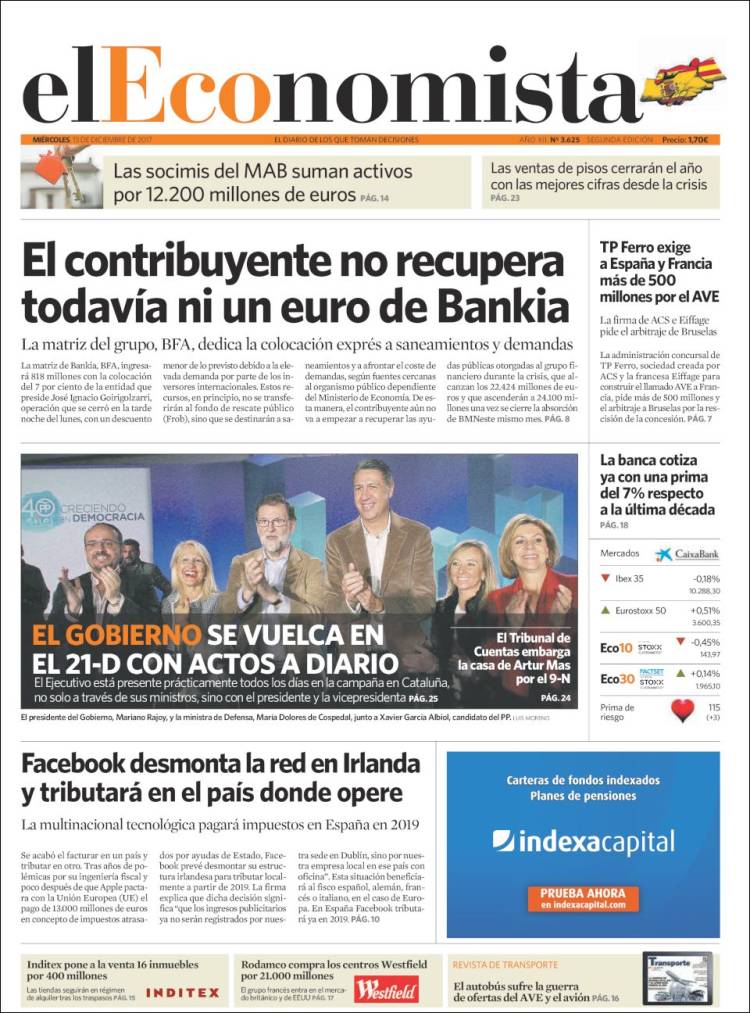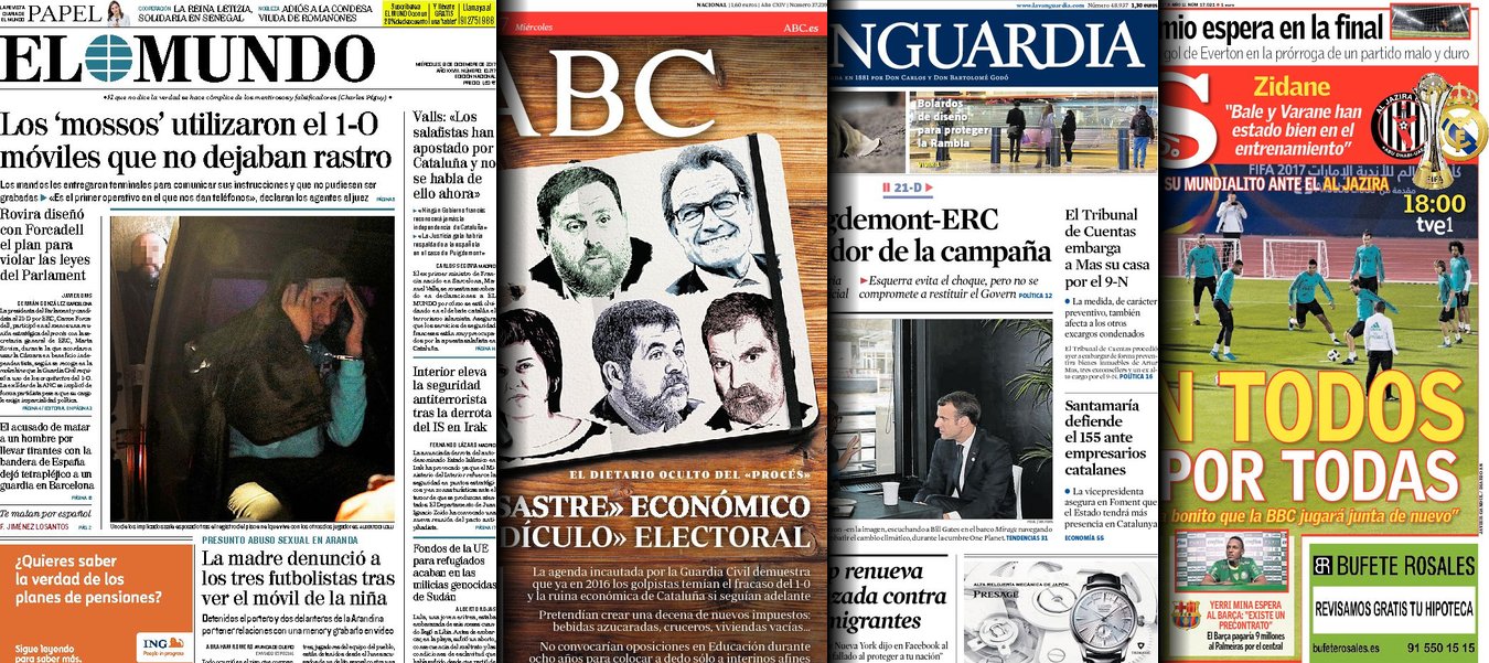 Portadas de los diarios El Mundo, El País, ABC, La Vanguardia, El Periódico, Cinco Días, El Economista, Marca, As y Sport.