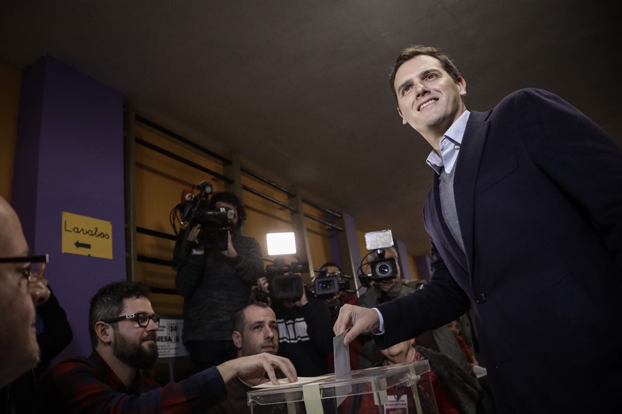 El líder de Cs, Albert Rivera, ha votado en el Colegio de Santa Marta de Hospitalet de Llobregat