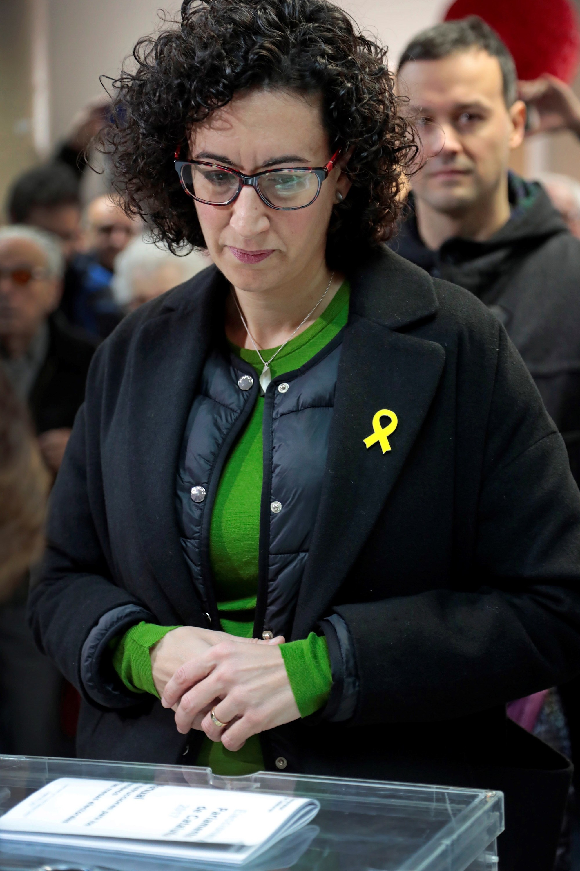 La candidata por ERC, Marta Rovira, ejerciendo su voto en el Casal Mossèn Guiteras en la ciudad de Vic