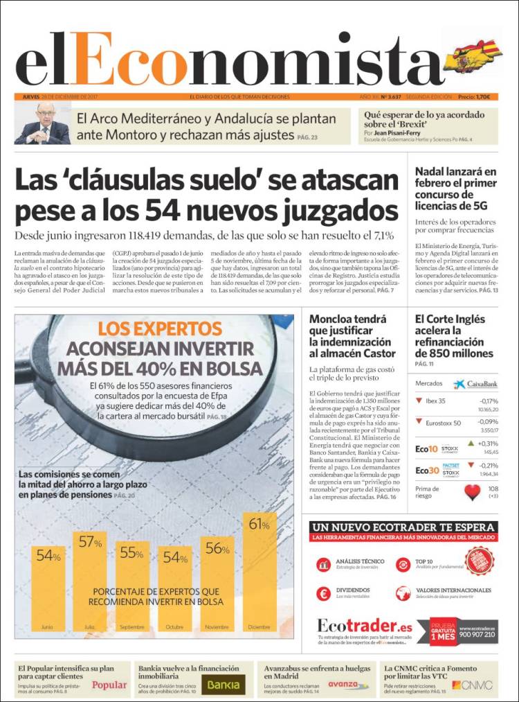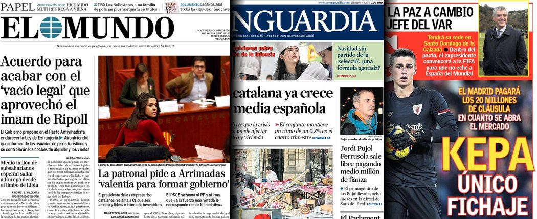 Portadas de los diarios El Mundo, El País, ABC, La Vanguardia, El Periódico, Cinco Días, El Economista, Marca, As y Mundo Deportivo.