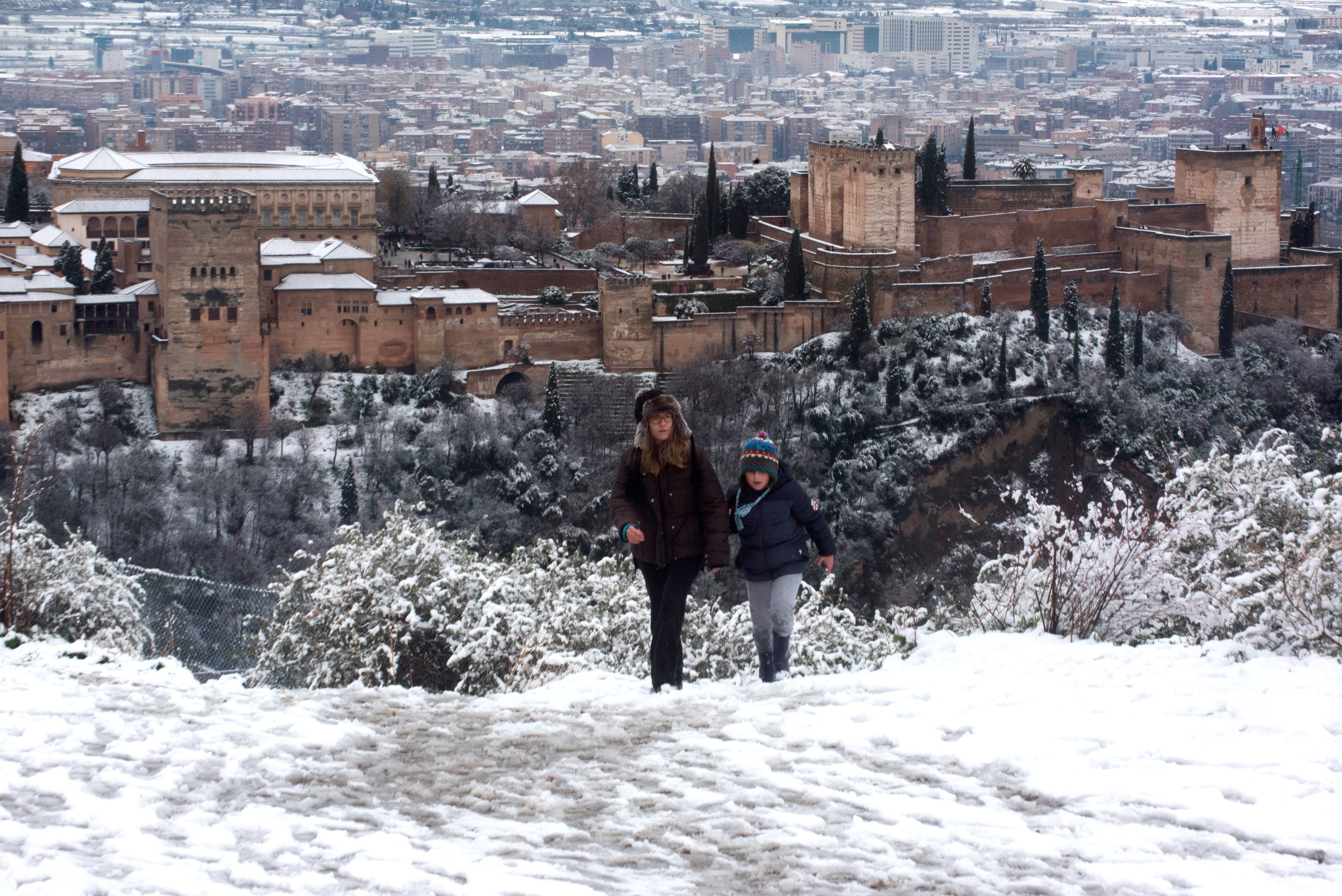 Los esquiadores aprovechan para desempolvar sus esquis en medio de la ciudad de Ávila.