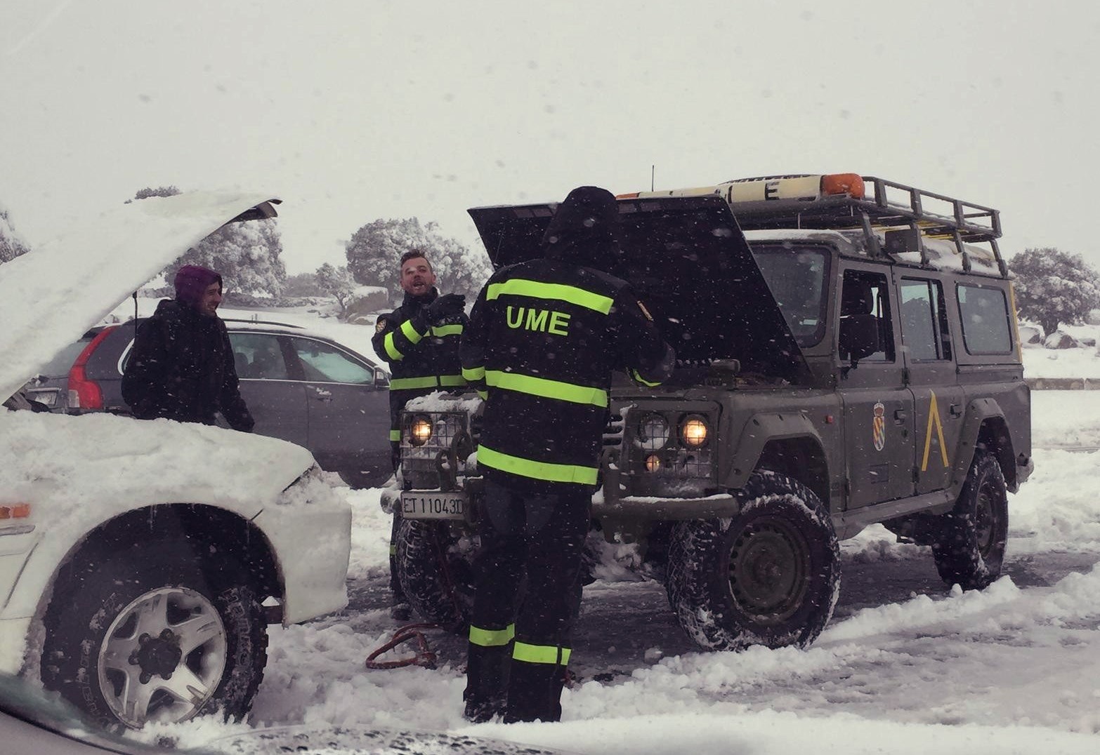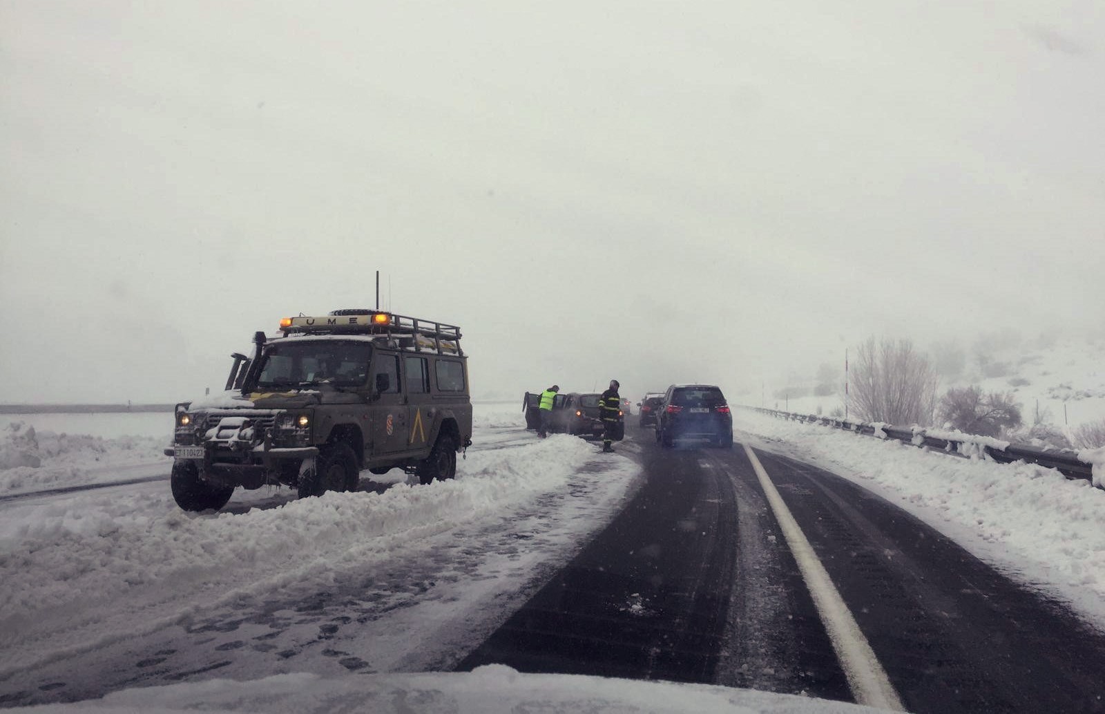 La UME intenta poner orden en el caos provocado por la nieve.