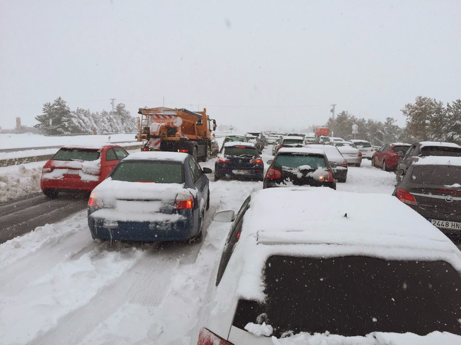 Vehículos atrapados por la nieve en muchas carreteras de todo el país.