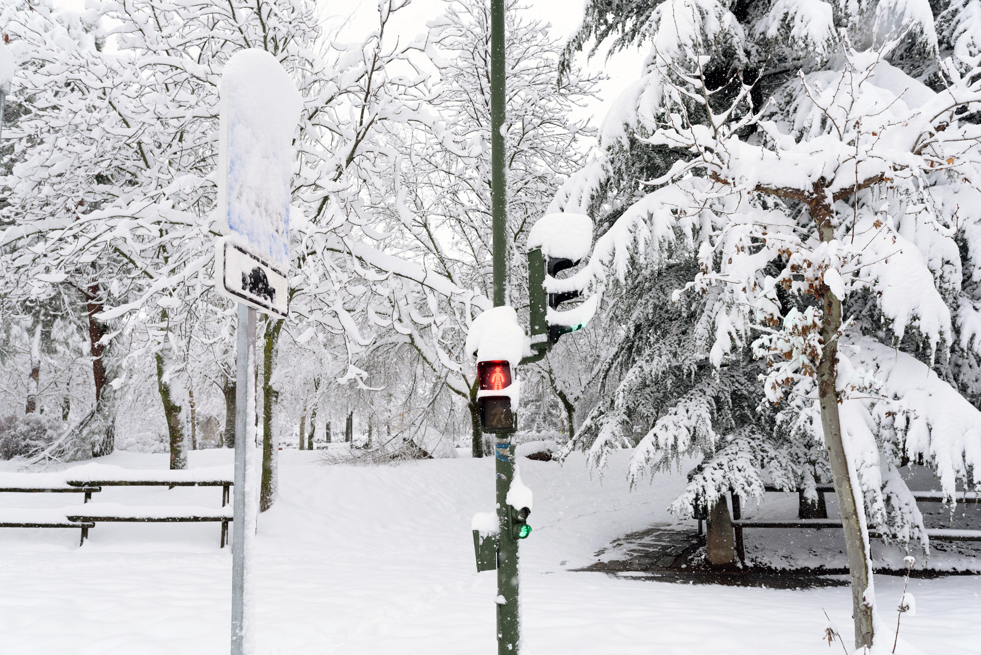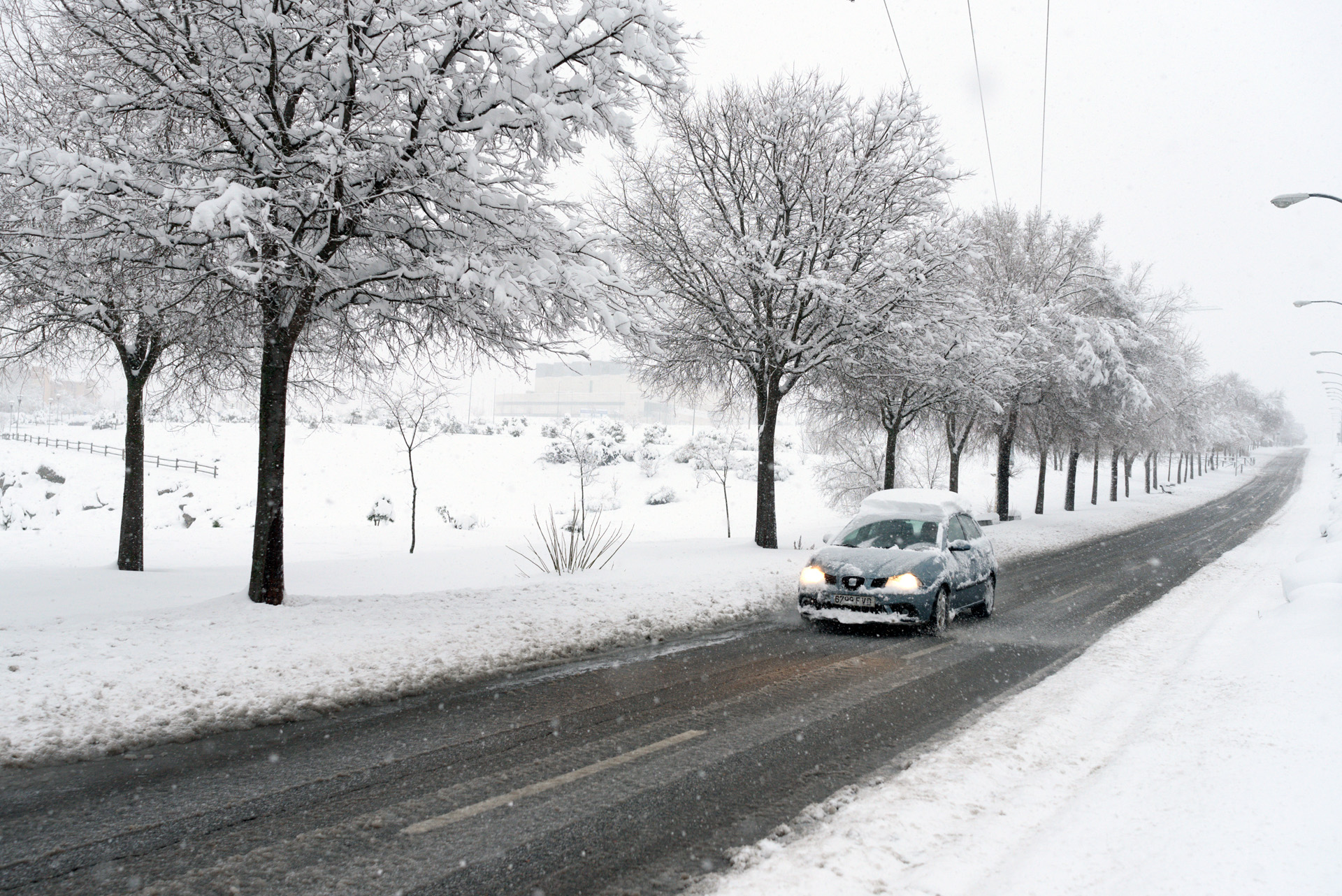 La estampa no podría ser más invernal en la Avenida de la Constitución a la altura del cuartel de la Guardia Civil.