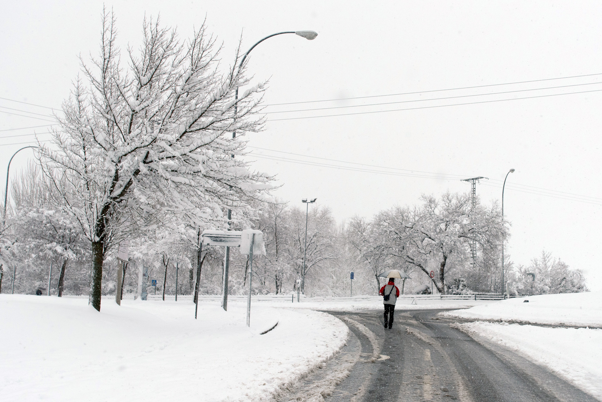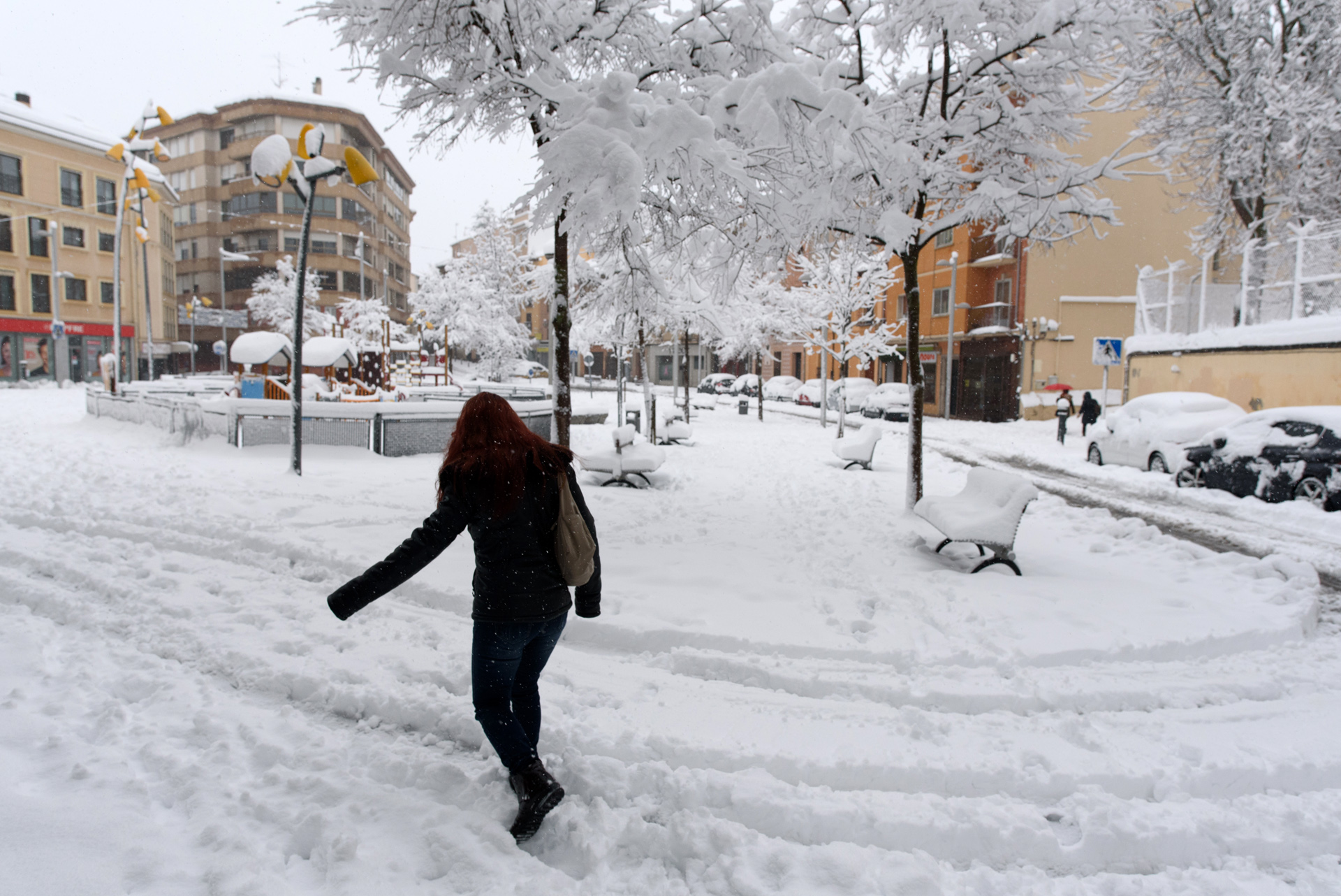 Una mujer camina sobre la nieve caída durante varias horas desde la tarde del sábado 7 de enero hasta las 10 de la mañana del día siguiente en la ciudad castellana.