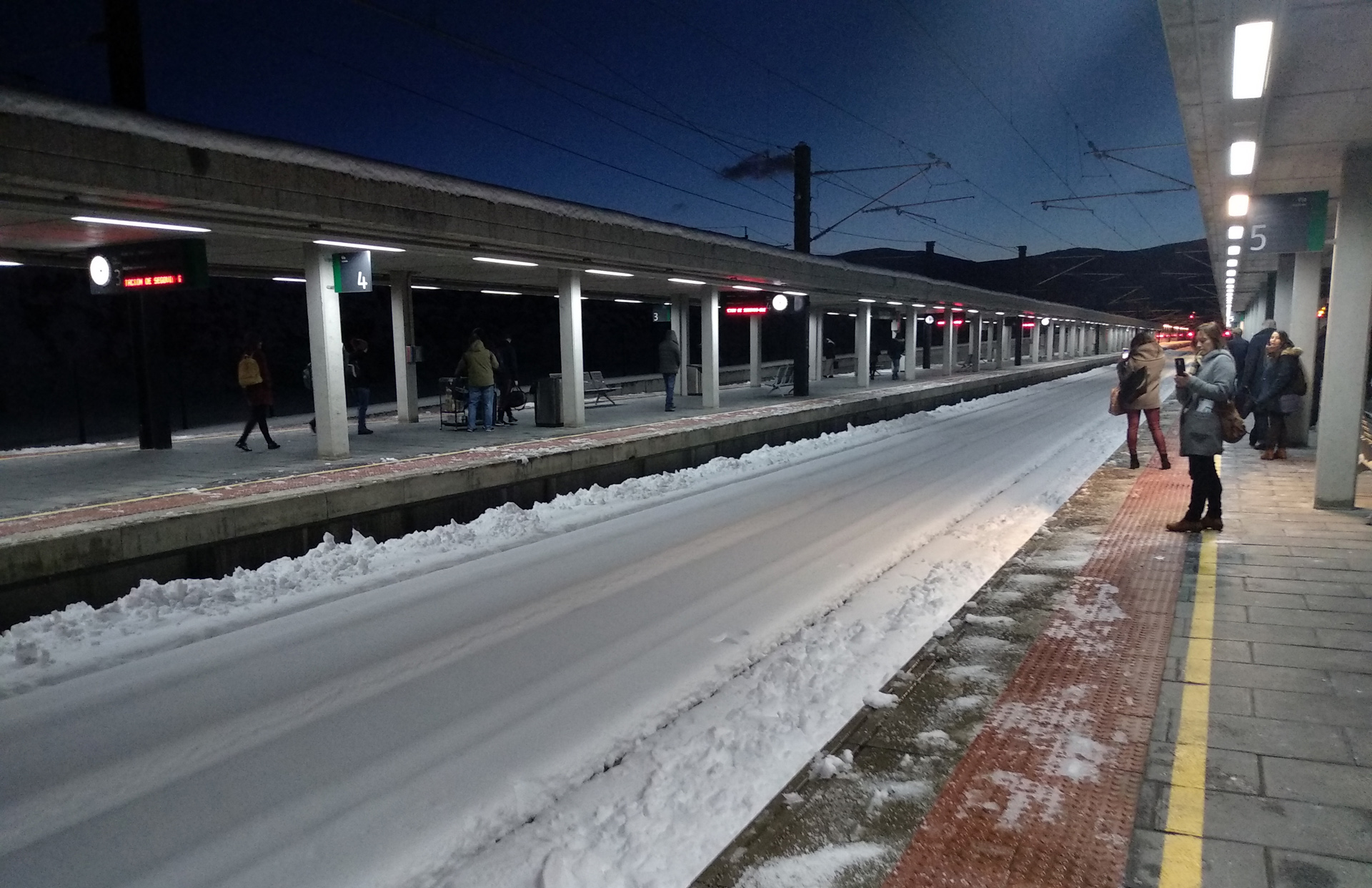 El lunes día 8 de enero, a primera hora de la mañana, dos de las cuatro vías utilizadas por los trenes AVE estaban fuera de servicio por la nieve acumulada.
