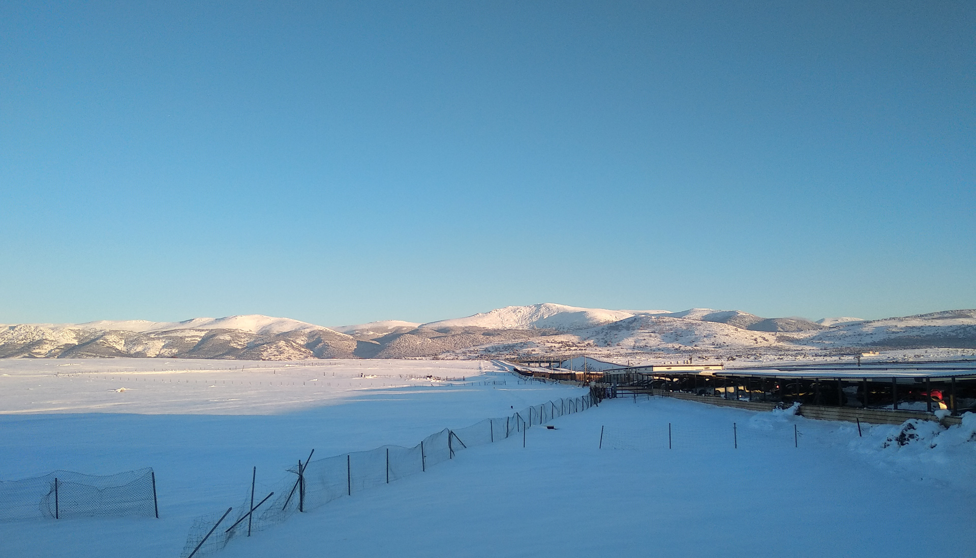 Una vista espectacular del acueducto cubierto de nieve desde el mirador del Postigo.