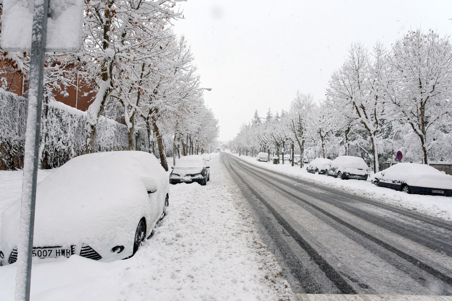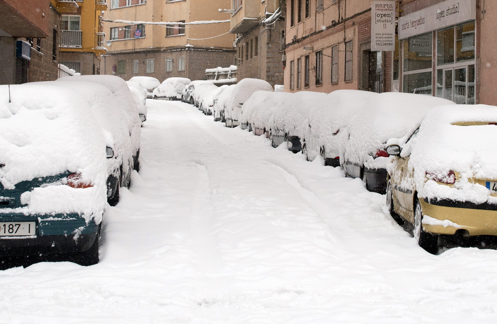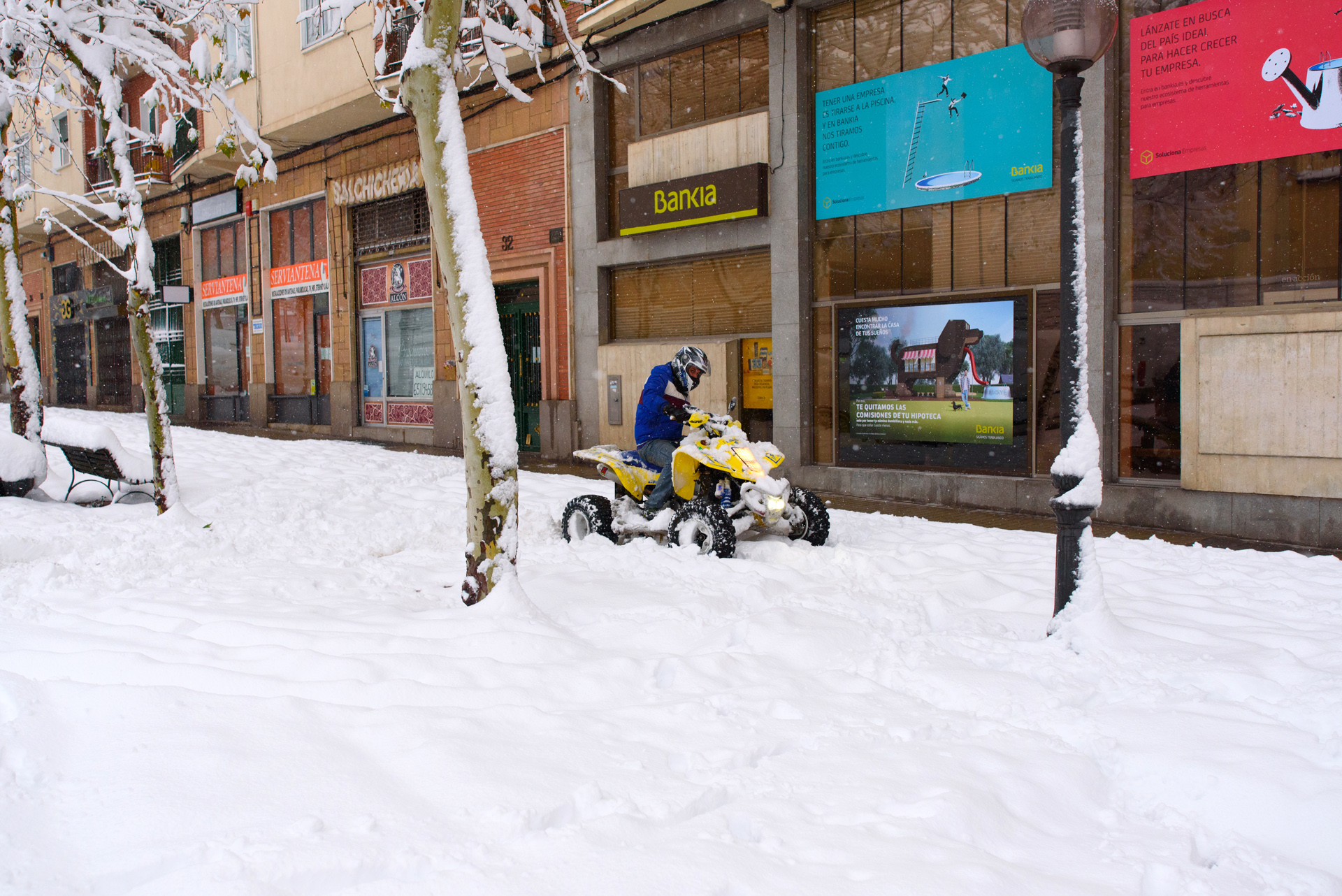 Una calle adyacente a la Avenida de la Constitución donde se puede ver las consecuencias de la intensa nevada.