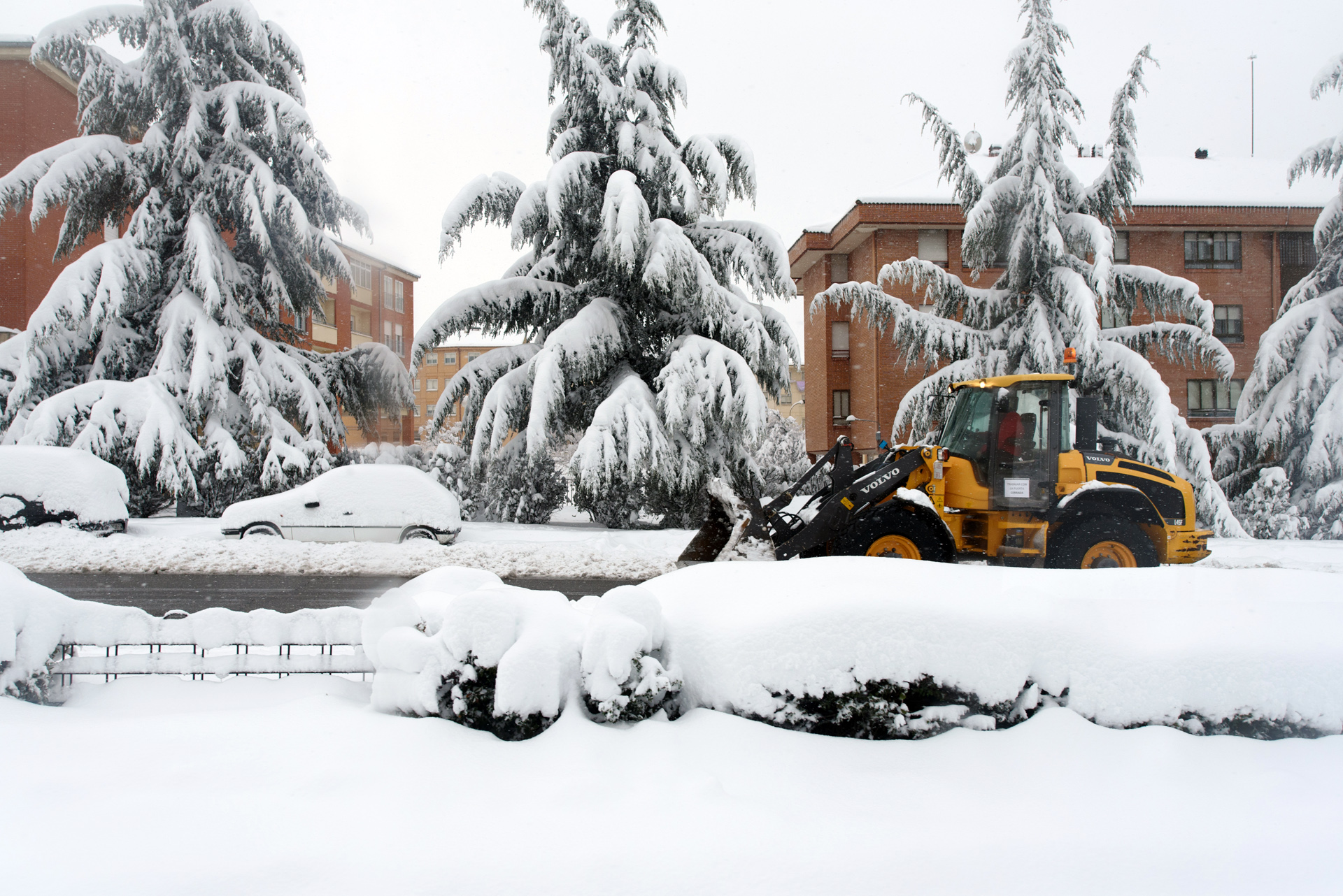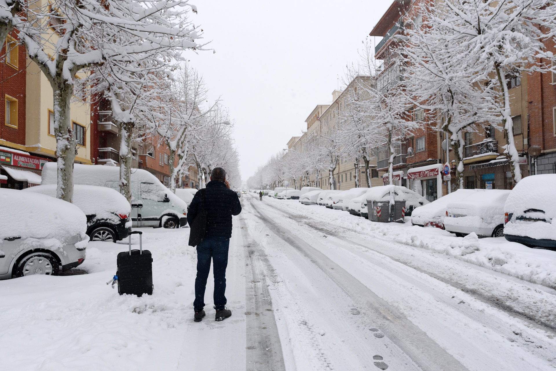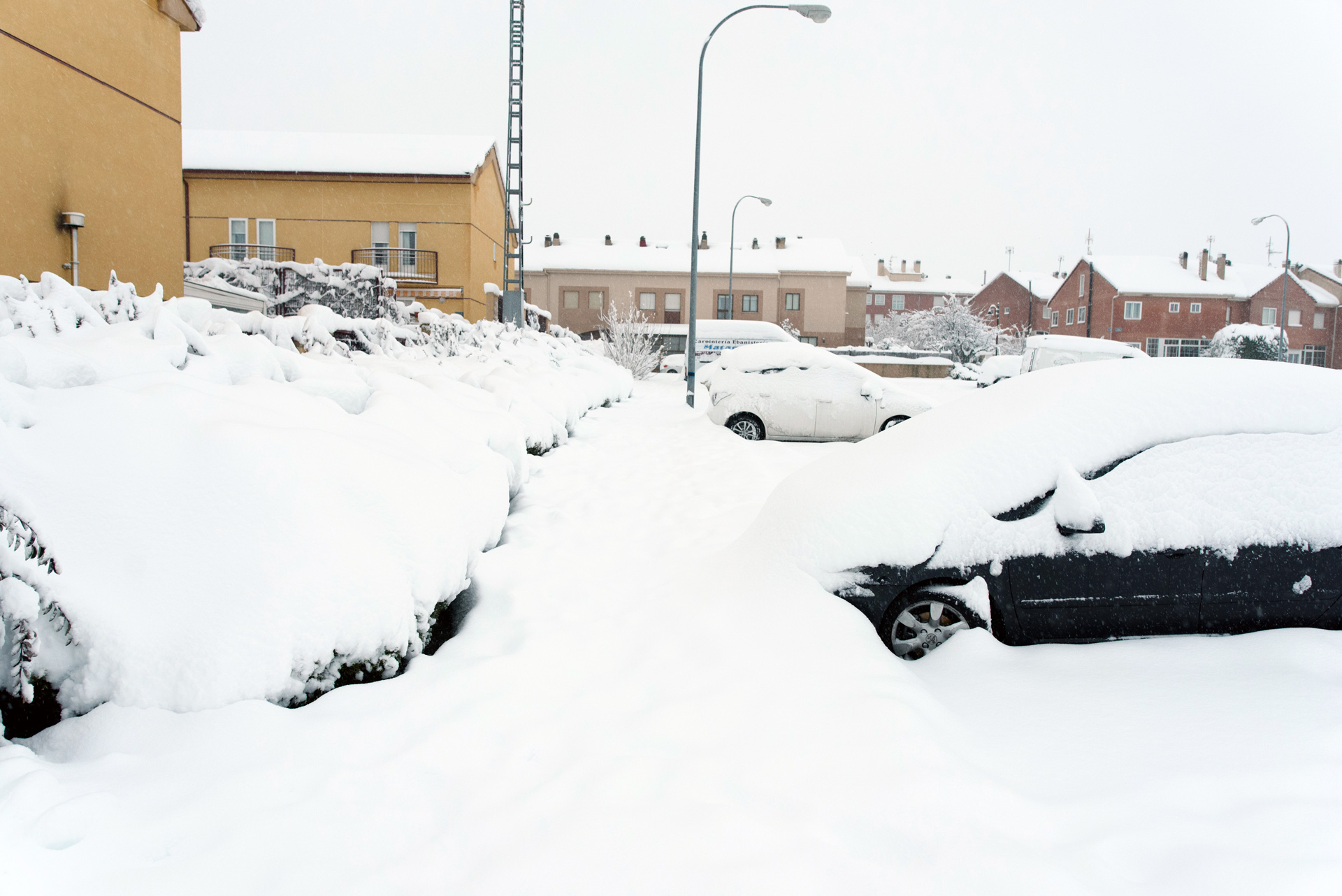 Una calle adyacente a la Avenida de la Constitución donde se puede ver las consecuencias de la intensa nevada.