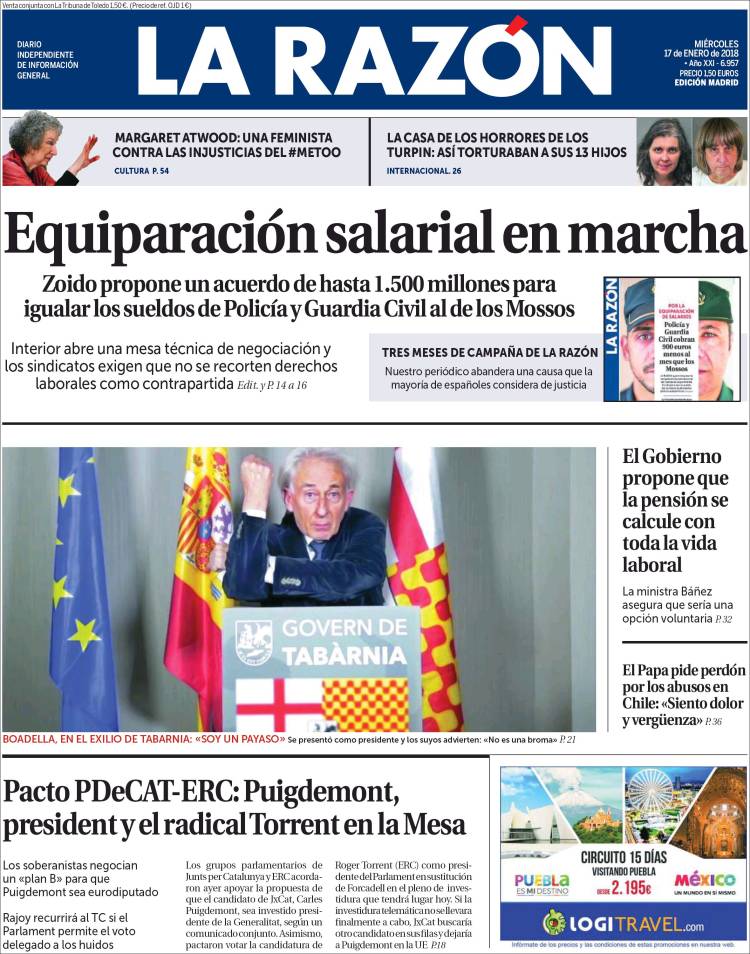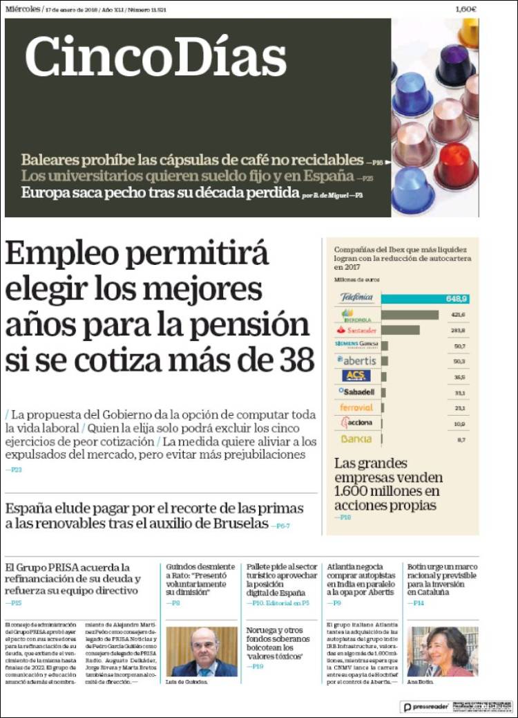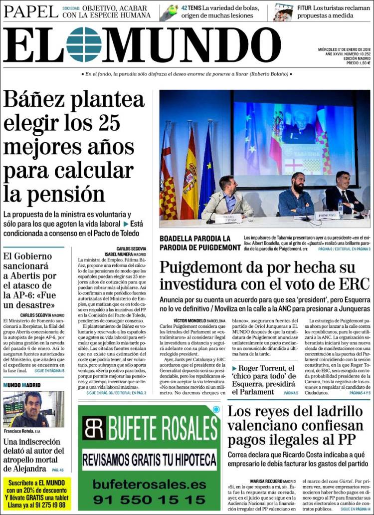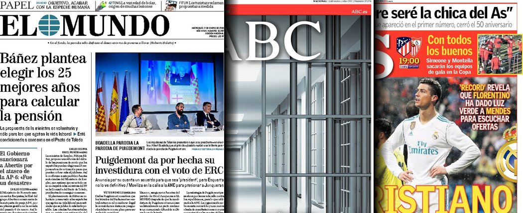 Portadas de los diarios El Mundo, El País, ABC, La Razón, La Vanguardia, El Periódico, Cinco Días, El Economista, Marca, As y Mundo Deportivo.