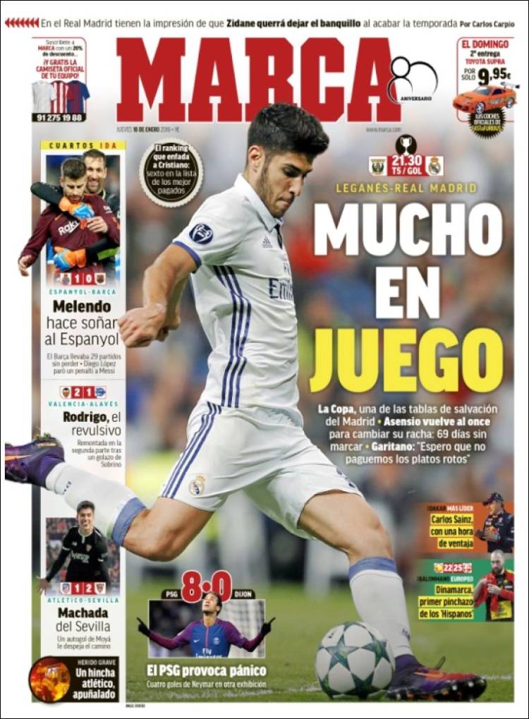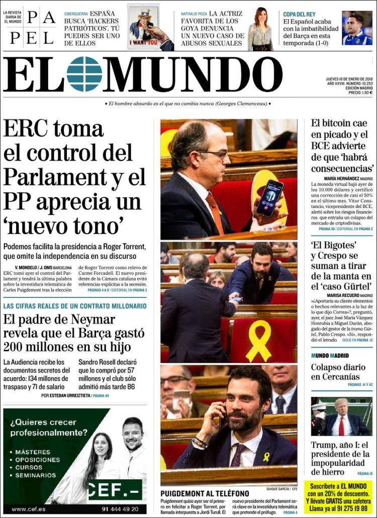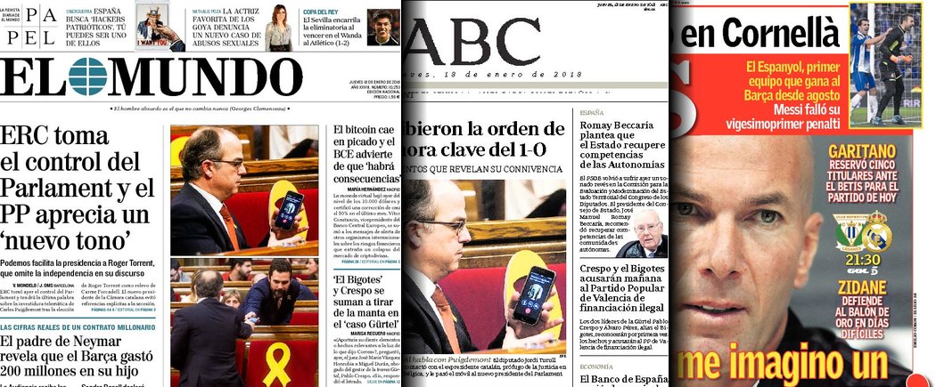 Portadas de los diarios El Mundo, El País, ABC, La Razón, La Vanguardia, El Periódico, Cinco Días, El Economista, Marca, As y Mundo Deportivo.
