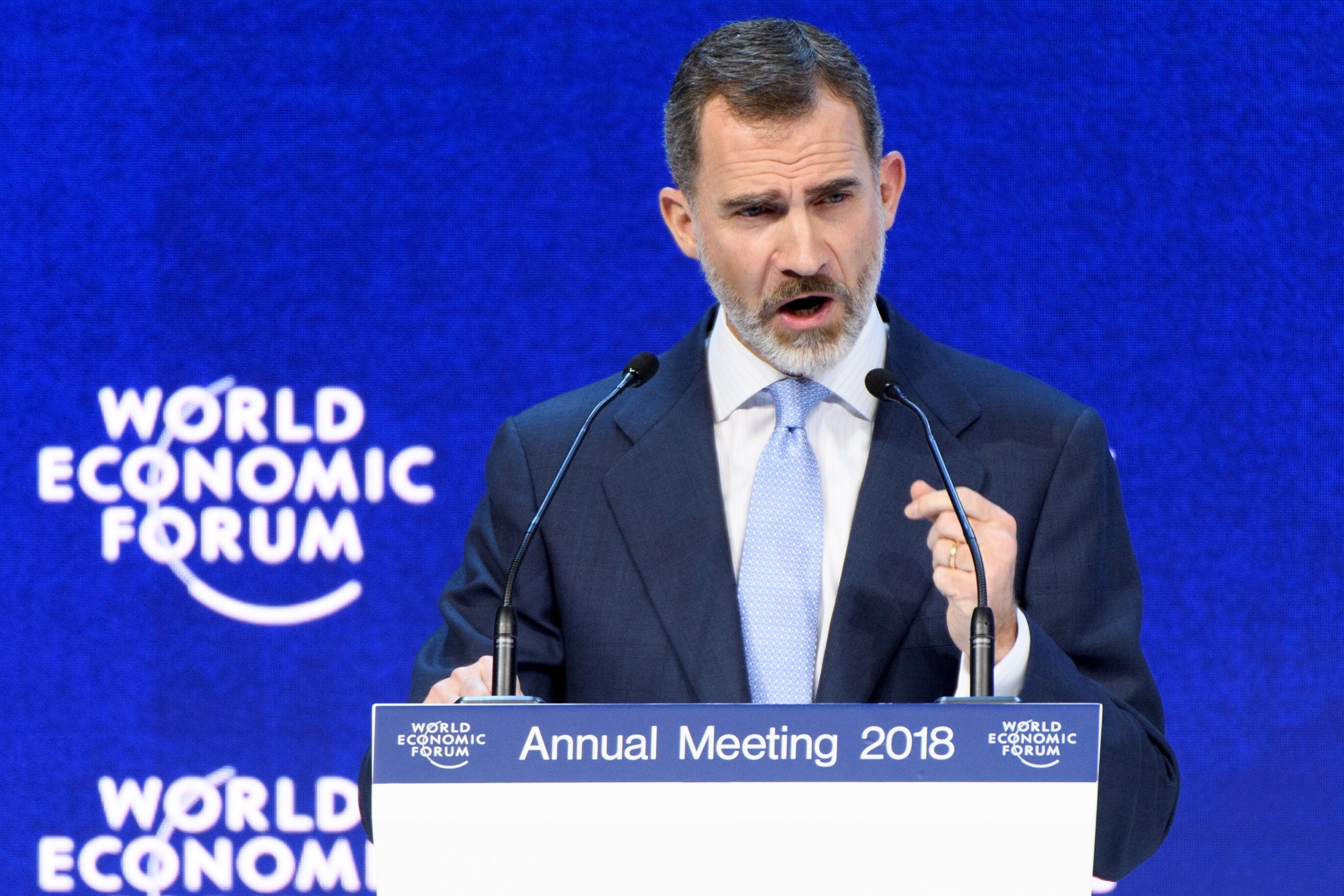 En su intervención ante el plenario del Foro de Davos, que reúne en su 48 edición a unos 3.000 participantes, entre ellos 70 jefes de Estado y de Gobierno, el monarca subrayó que la "reciente crisis" en Cataluña ofrece como lección para todas las democracias del mundo la necesidad de preservar el imperio de la ley como piedra angular de la propia democracia y de respetar el pluralismo político.