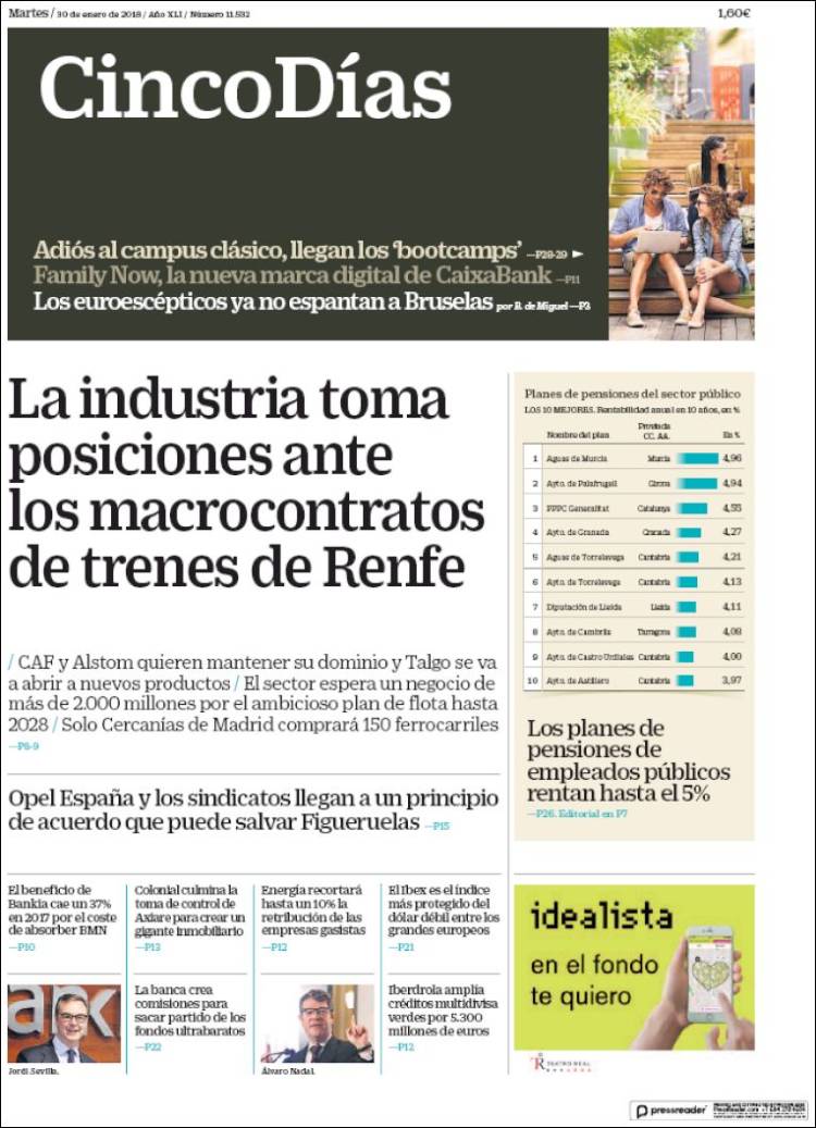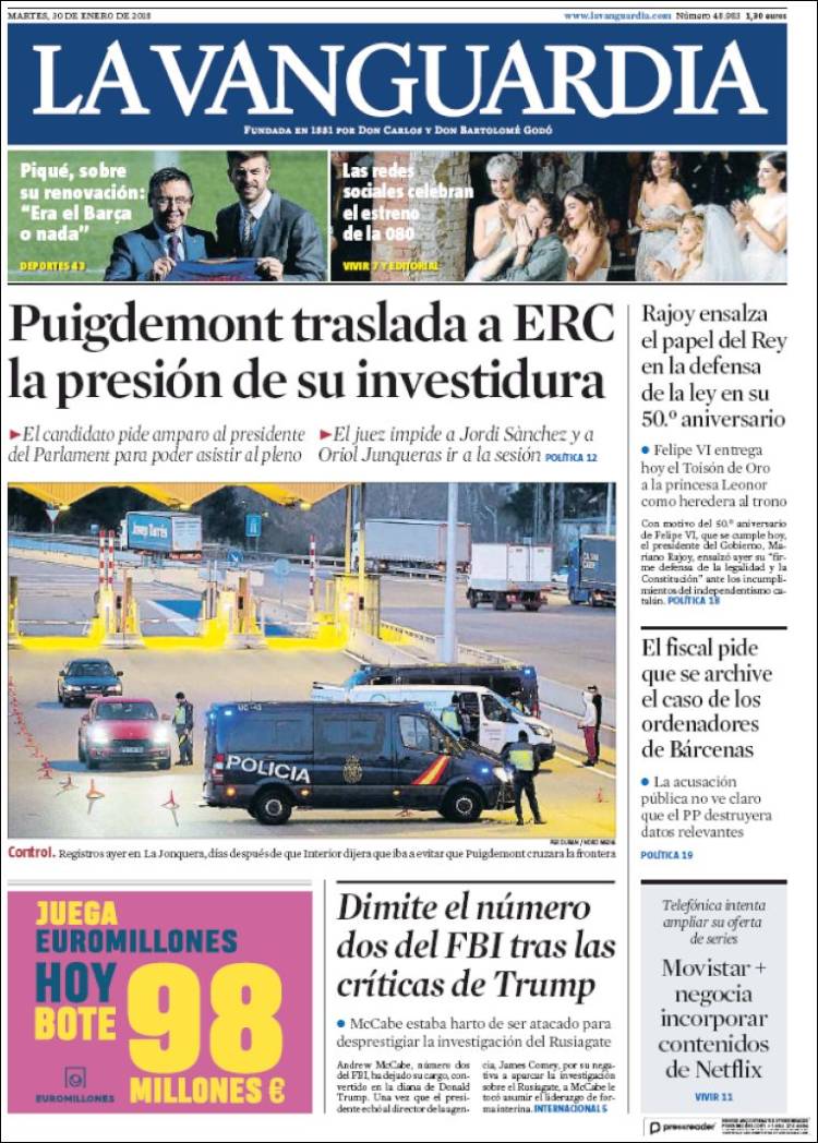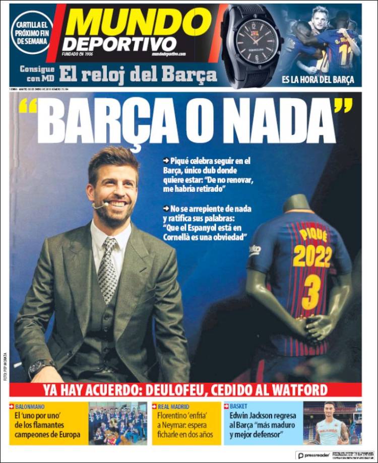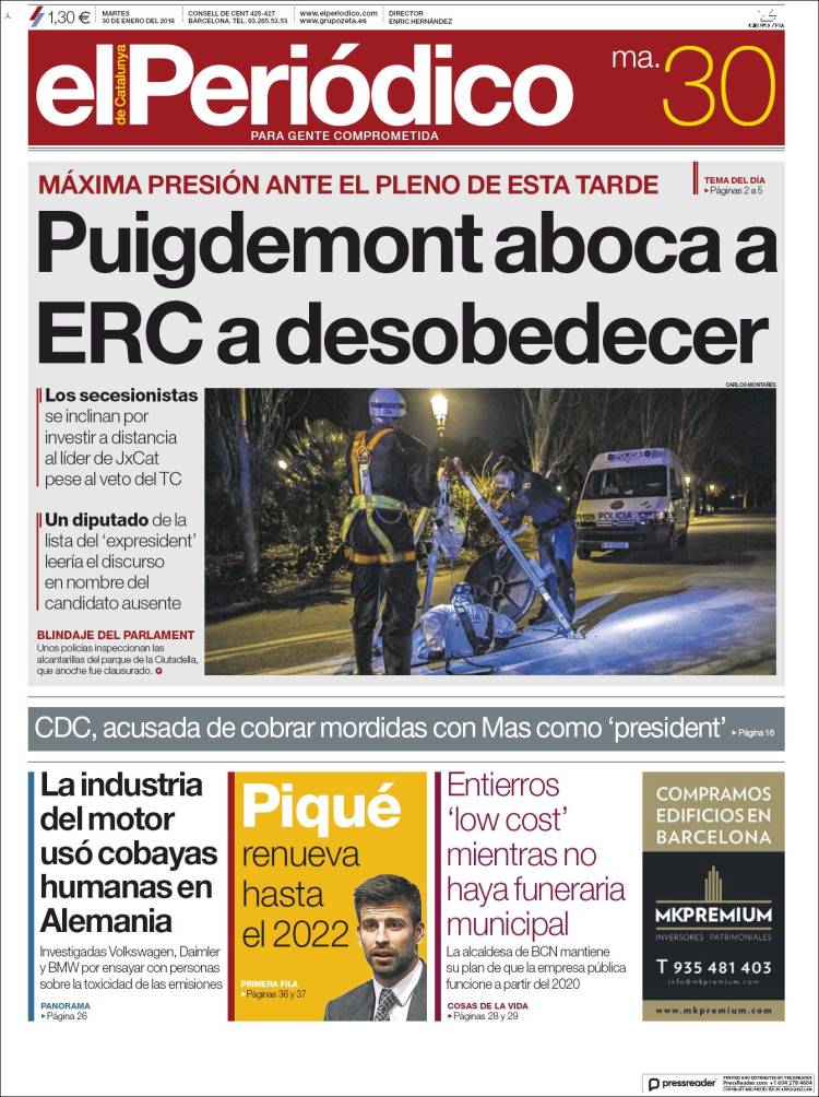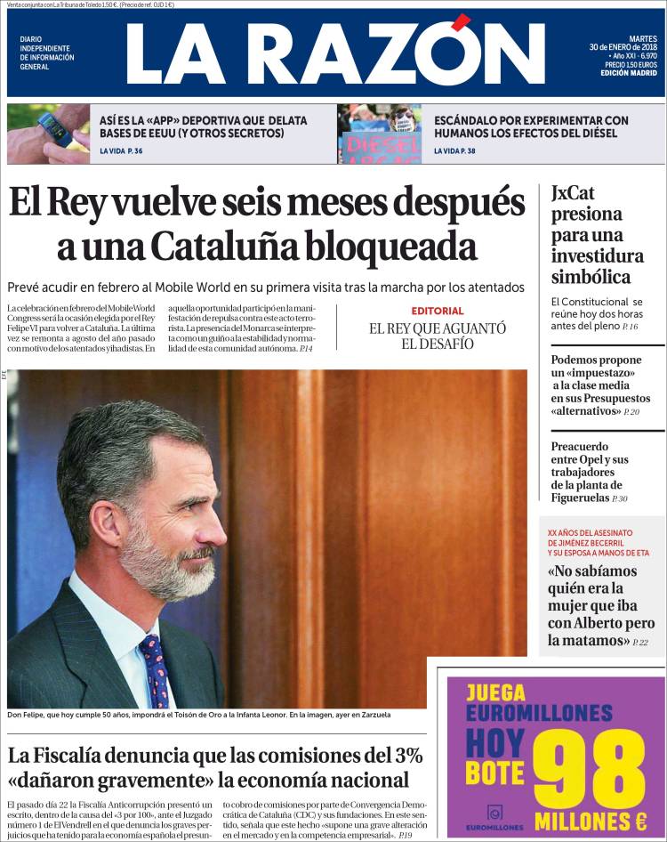 Portadas de los diarios El Mundo, El País, ABC, La Razón, La Vanguardia, El Periódico, Cinco Días, El Economista, Marca, As y Mundo Deportivo.