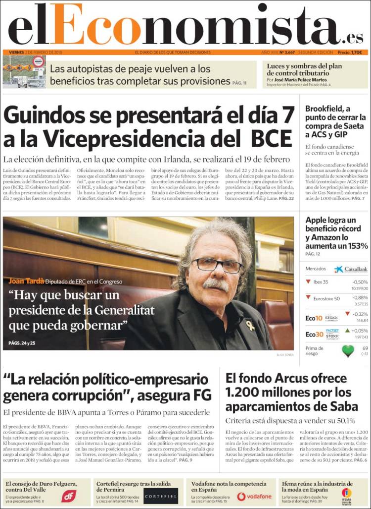 Portadas de los diarios El Mundo, El País, ABC, La Razón, La Vanguardia, El Periódico, Cinco Días, El Economista, Marca, As y Mundo Deportivo.