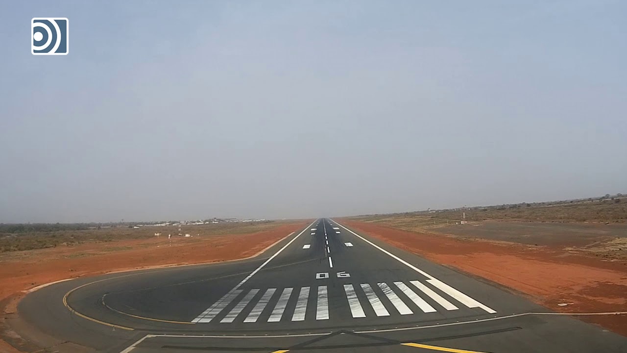 Aterrizaje desde la cabina del piloto de un avión de transporte C130 Hércules del Ejército del Aire en el aeropuerto de Bamako (Mali).