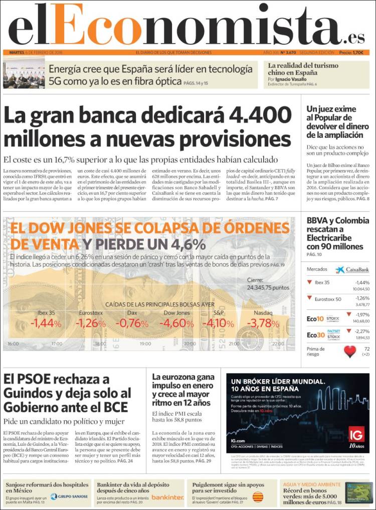 Portadas de los diarios El Mundo, El País, ABC, La Razón, La Vanguardia, El Periódico, Cinco Días, El Economista, Marca, As y Mundo Deportivo.