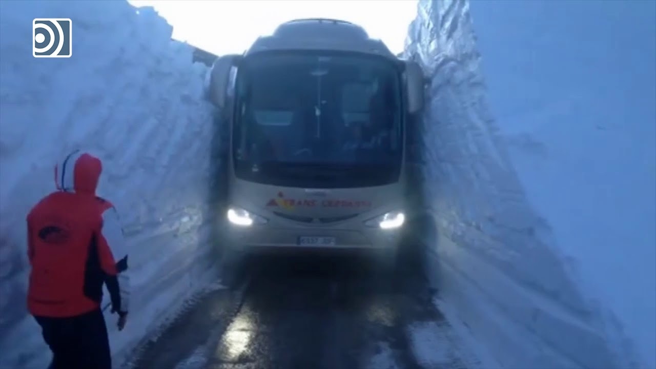 Un autobús de la empresa de autobuses Trans Cerdanya atravesó dos paredes de nieve de 4 metros de altura. La dificultad fue máxima ya que el hueco abierto era prácticamente el mismo que las medidas del bus, casi cuatro metros de alto y 2,60 de ancho, 3 metros si incluimos los retrovisores.