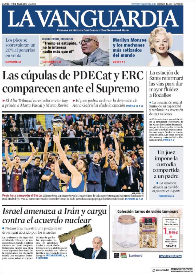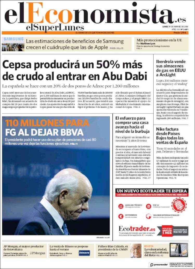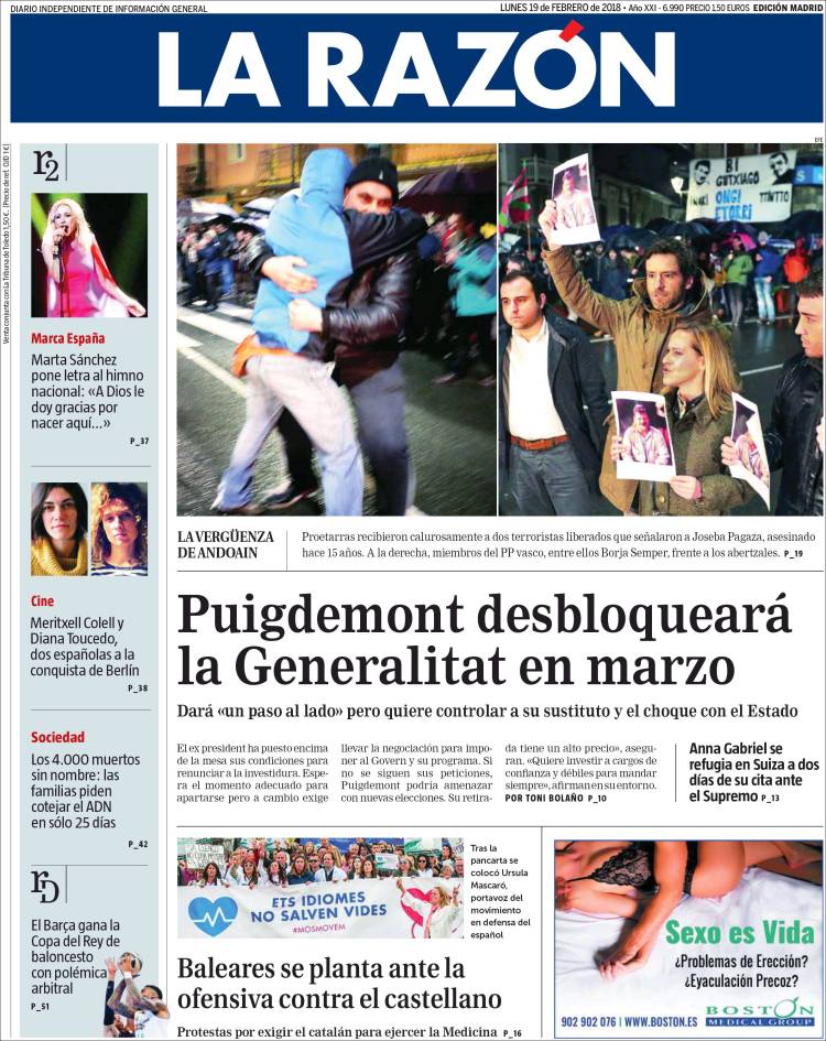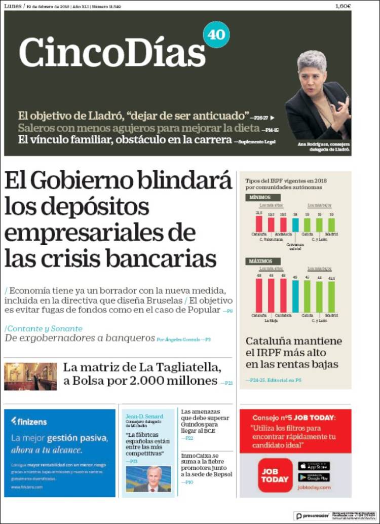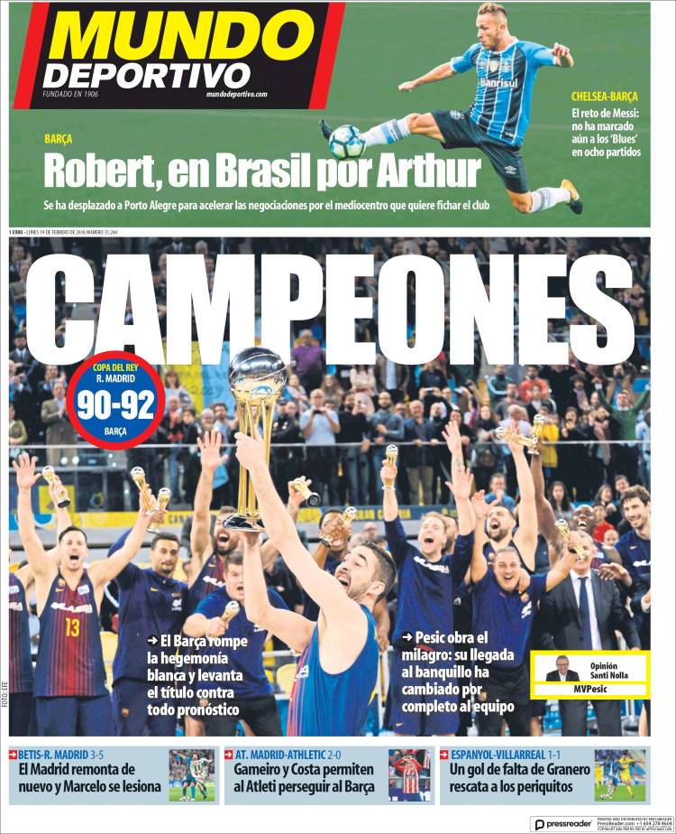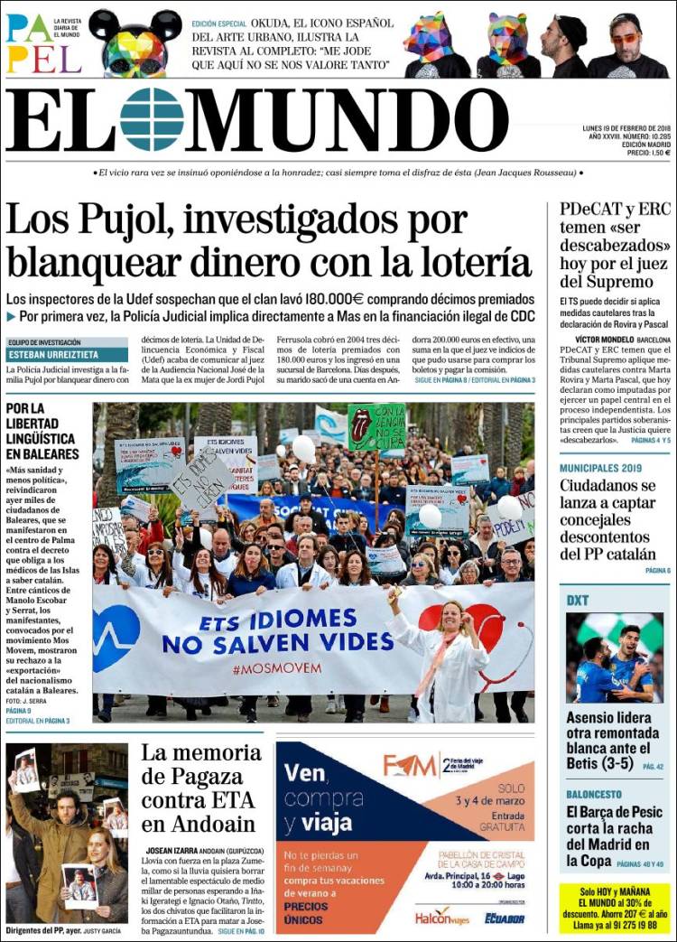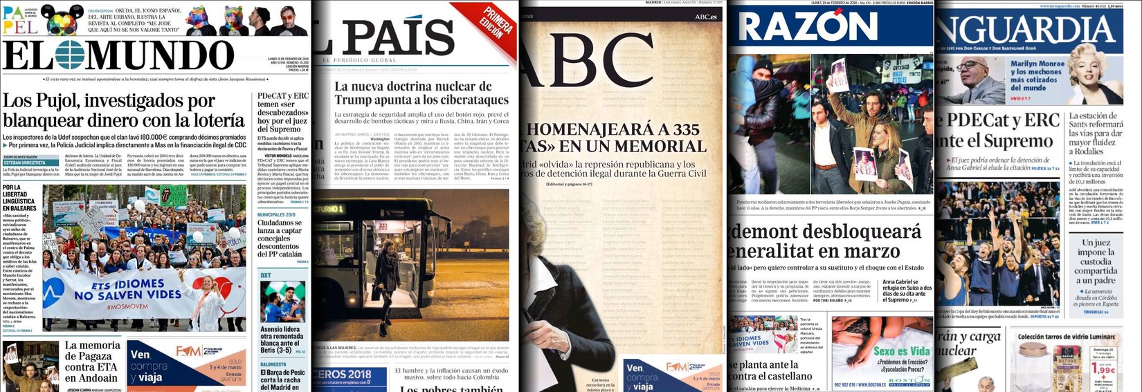 Portadas de los diarios El Mundo, El País, ABC, La Razón, La Vanguardia, El Periódico, Cinco Días, El Economista, Marca, As y Mundo Deportivo.