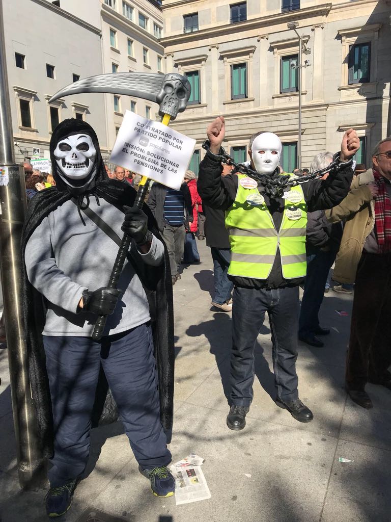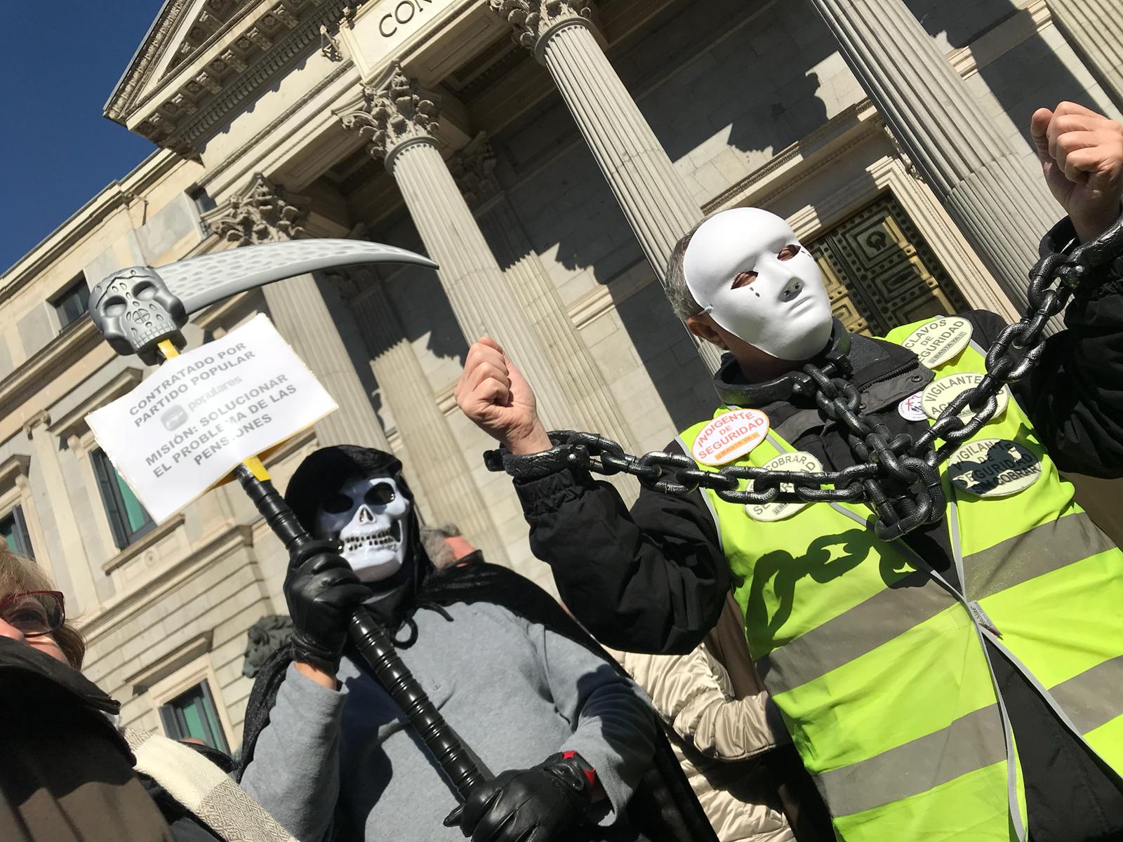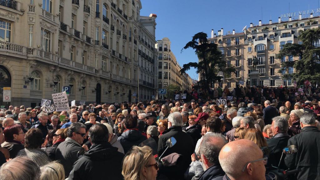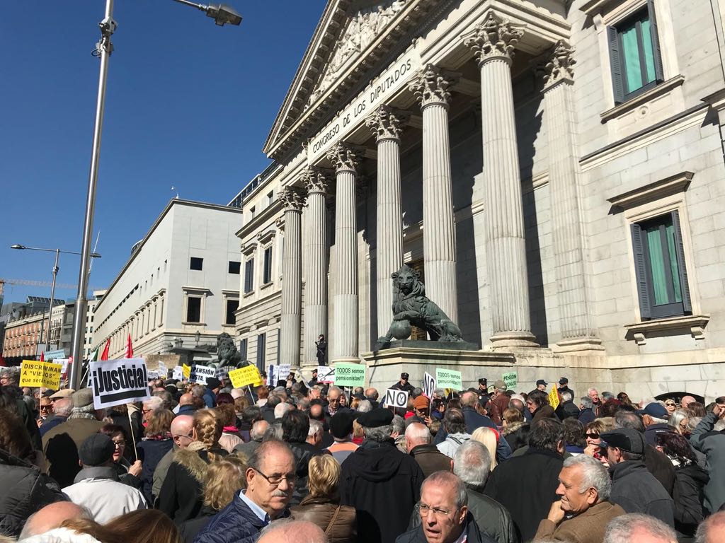 Entre 3.000 y 4.000 pensionistas han bloqueado las puertas del Congreso, bloqueando la entrada principal, a escasos tres metros de la puerta del Congreso de los Diputados. La Policía Nacional ha improvisado un cordón policial, sin éxito, para acordonar la carrera de San Jerónimo y controlar la manifestación.