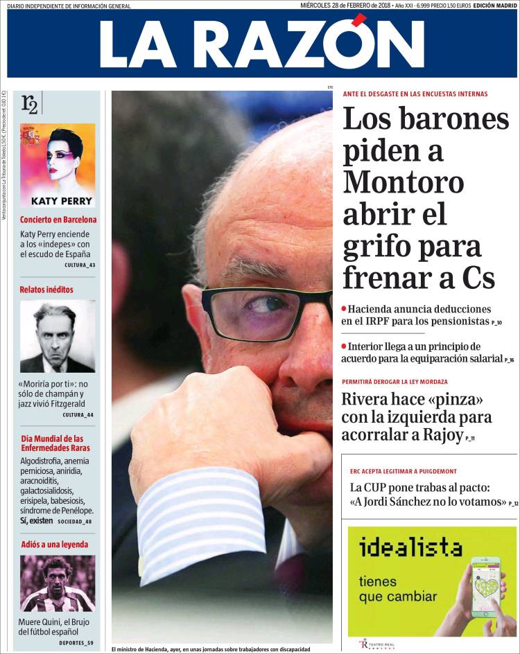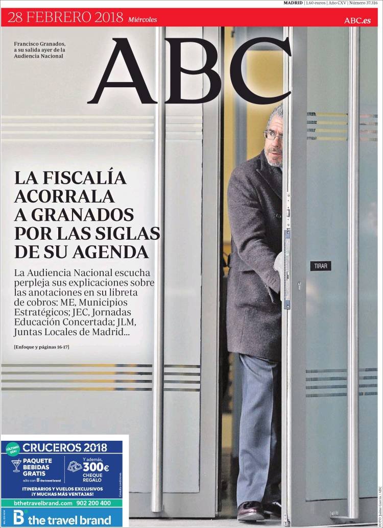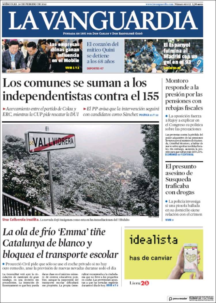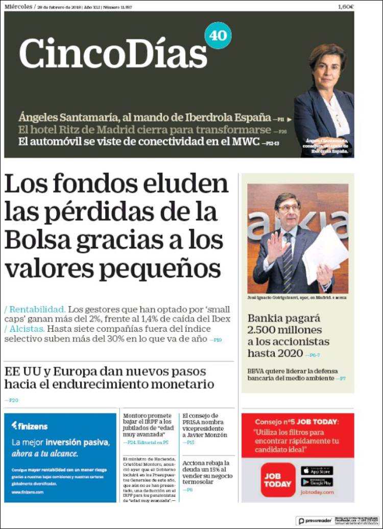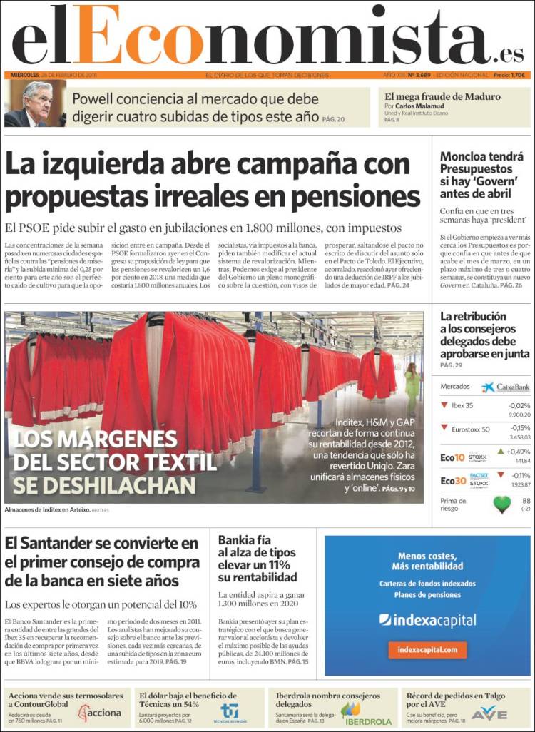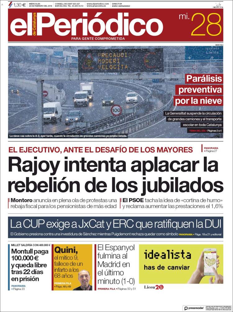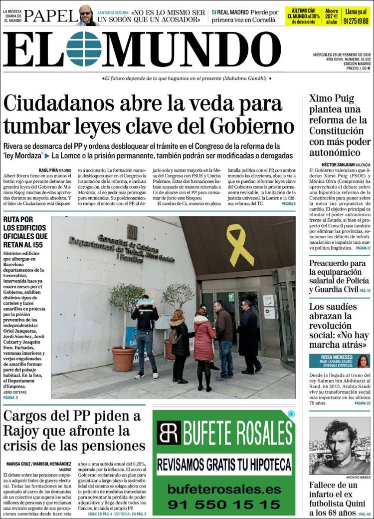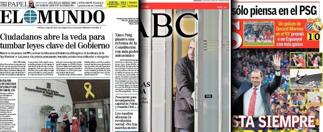 Portadas de los diarios El Mundo, El País, ABC, La Razón, La Vanguardia, El Periódico, Cinco Días, El Economista, Marca, As, Mundo Deportivo y Sport.