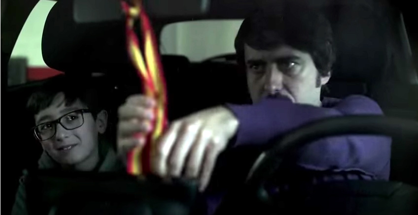 La historia se sitúa en el interior de un coche, donde están sentados un padre con su hijo. El comienzo ya es muy directo: el niño le ofrece a su padre una cinta (para colgar en el retrovisor) con los colores de la bandera de España.