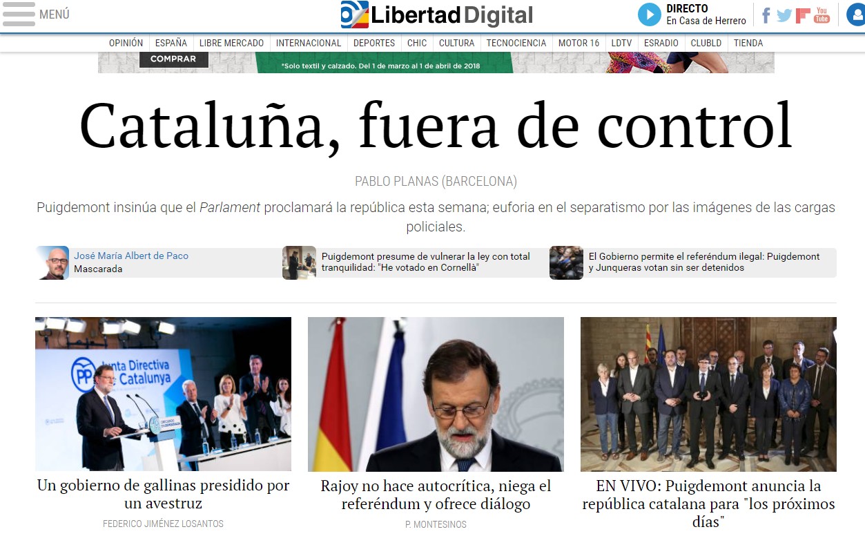 Si comenzábamos este repaso a la historia de Libertad Digital con el artículo de Federico Jiménez Losantos del año 2000 en el que advertía de que el gran peligro para España y la libertad era Jordi Pujol, no podíamos cerrarlo con otra imagen que no fuera la constatación, 18 años después, de lo certero de esa advertencia. El golpe del 1 de octubre de 2017 supuso la confirmación de todo lo que hemos sostenido sobre el separatismo catalán a lo largo de estos 18 años.