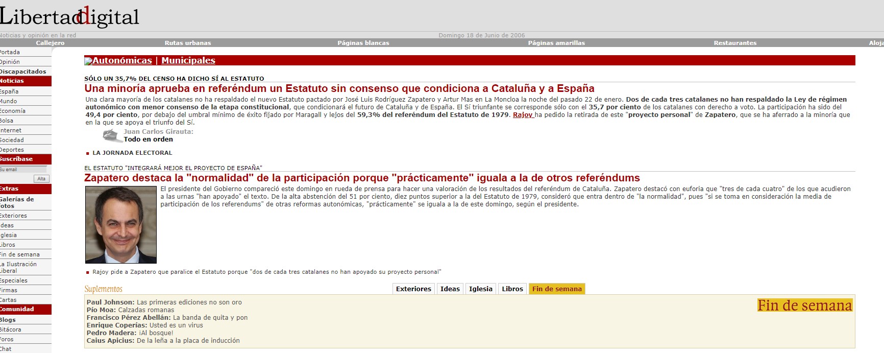Así era el primer diseño de Libertad Digital. Se mantuvo desde el arranque de nuestro diario, el 8 de marzo de 2000, hasta noviembre de ese mismo año.