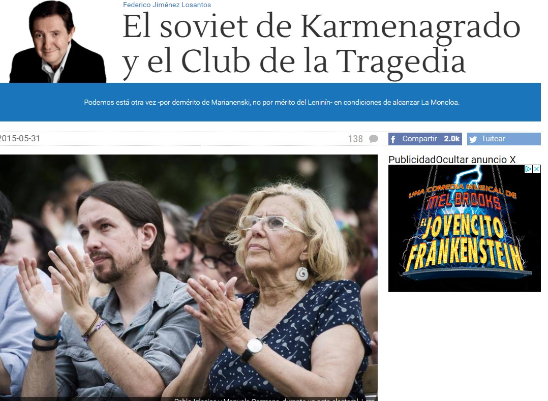 Podemos llegaba a las alcaldías de las principales ciudadaes españolas y se situaba a un paso de la Moncloa. Federico Jiménez Losantos advertía del peligro para la libertad y la Nación que suponía la llegada al poder de esta formación totalitaria.