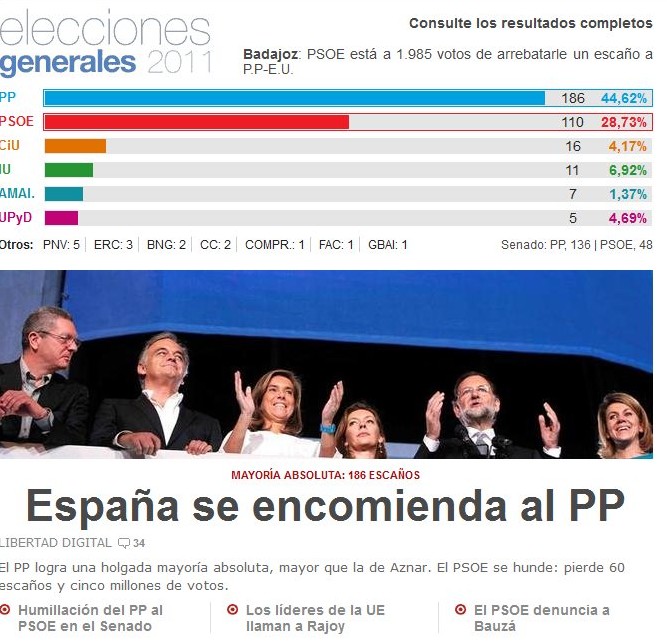 A la tercera fue la vencida. Tras el desastre económico, el PP consiguió ganar las elecciones generales por mayoría absoluta, meses después de lograr un vuelco sin precedentes en el mapa autonómico y municipal.