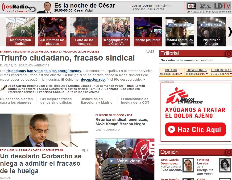 La huelga general convocada por los sindicatos de izquierdas, con un apoyo poco disimulado por parte del Gobierno, que incorporó a un dirigente de UGT como ministro poco después, terminó con un fracaso monumental.