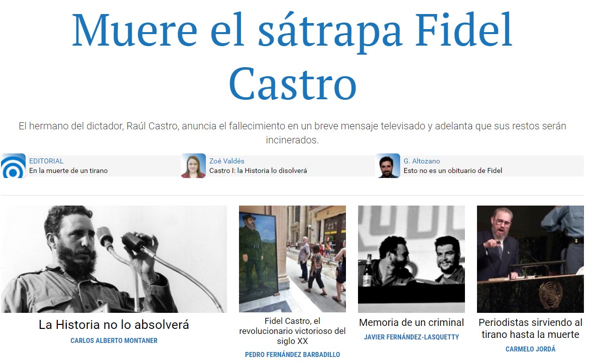 Una de nuestras señas de identidad es que despedimos a los sátrapas como se merecen. Y así lo hicimos con el campeón de los tiranos, Fidel Castro.