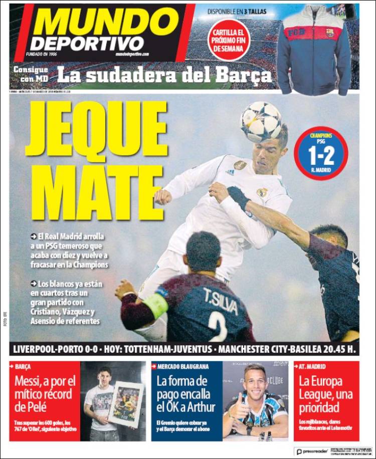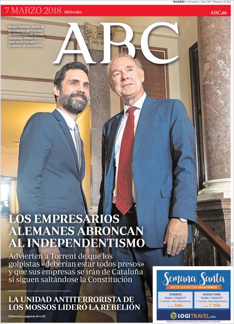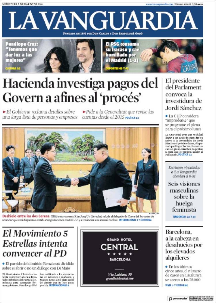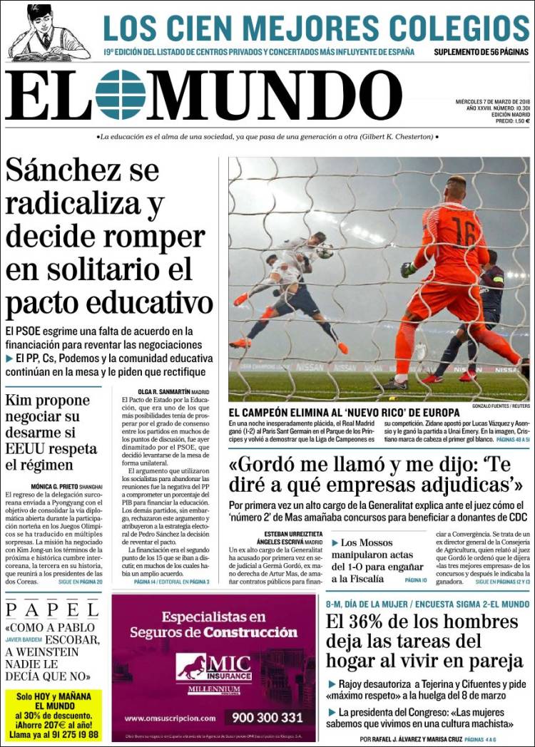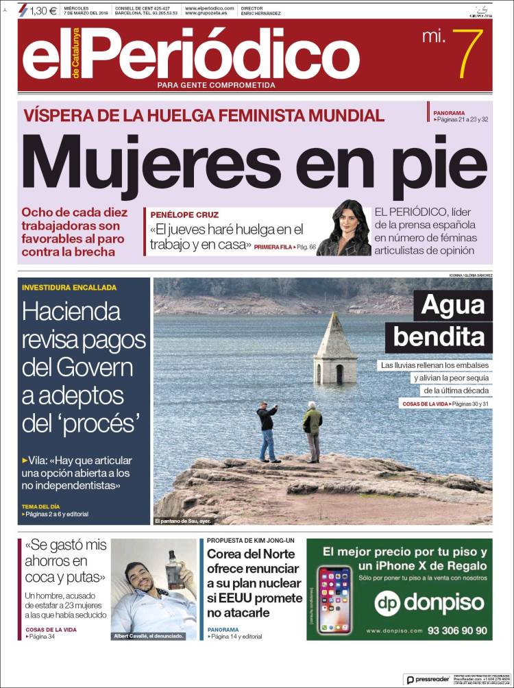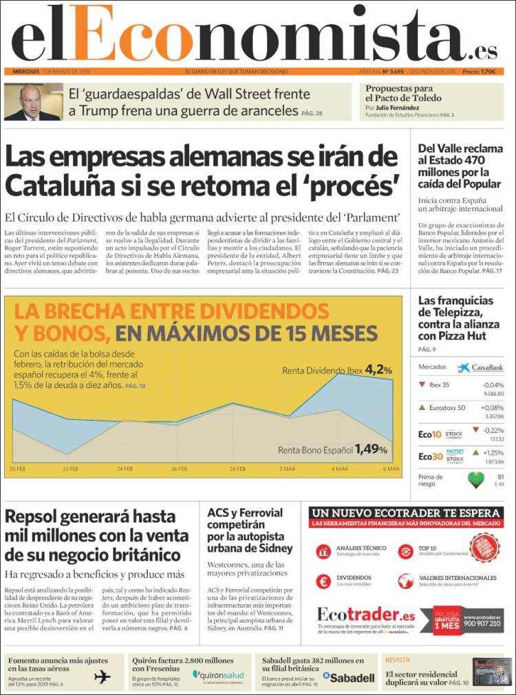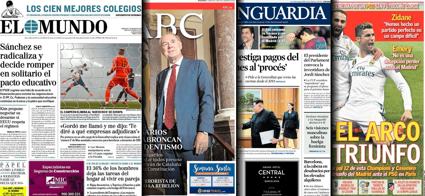 Portadas de los diarios El Mundo, El País, ABC, La Razón, La Vanguardia, El Periódico, Cinco Días, El Economista, Marca, As, Mundo Deportivo y Sport.