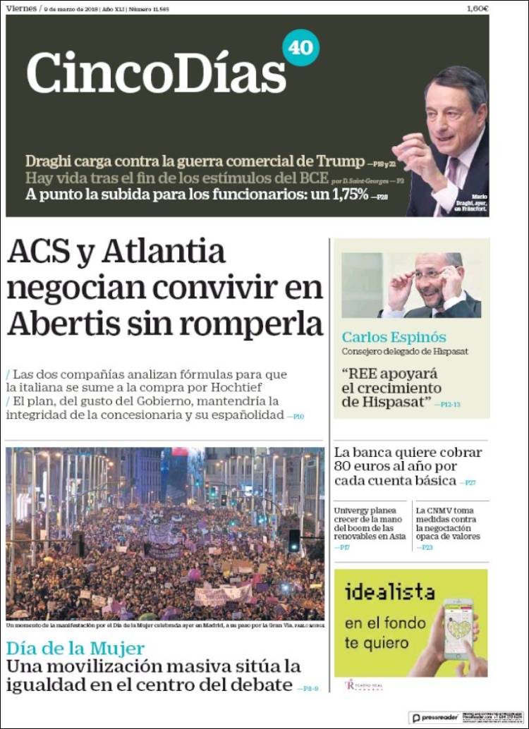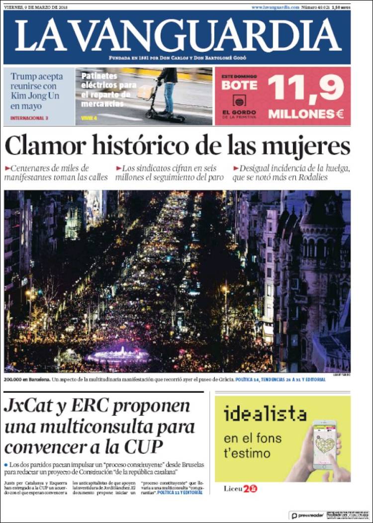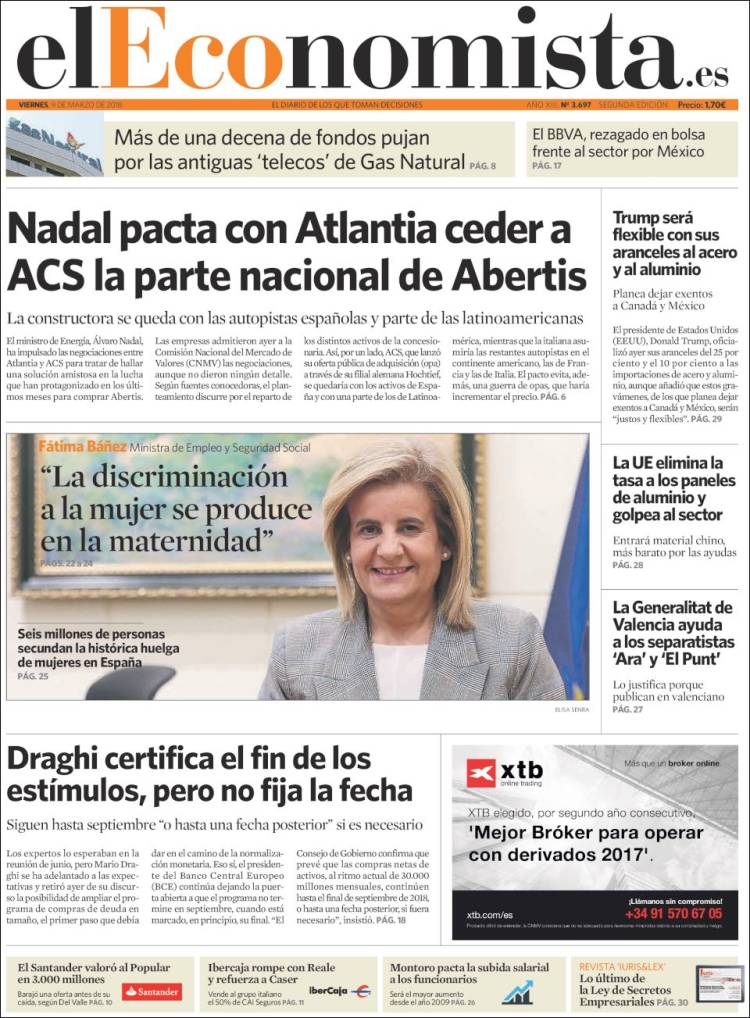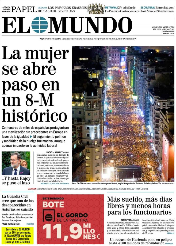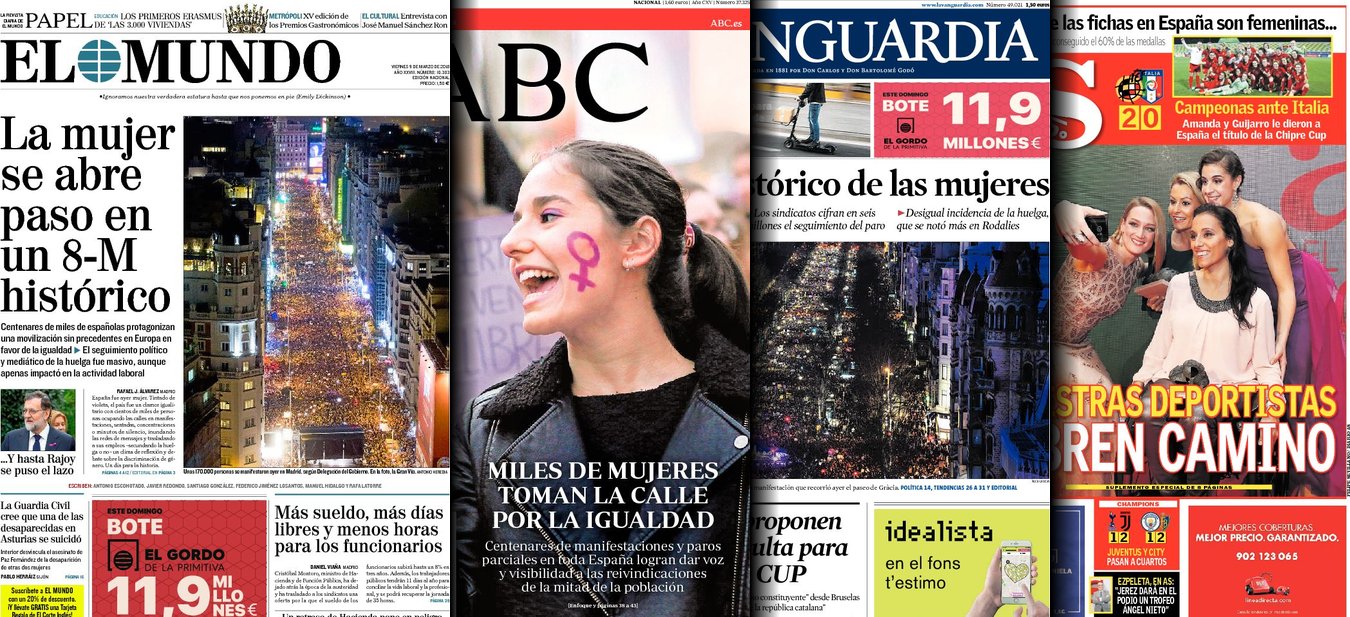 Portadas de los diarios El Mundo, El País, ABC, La Razón, La Vanguardia, El Periódico, Cinco Días, El Economista, Marca, As, Mundo Deportivo y Sport.