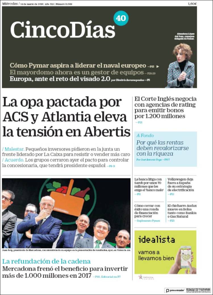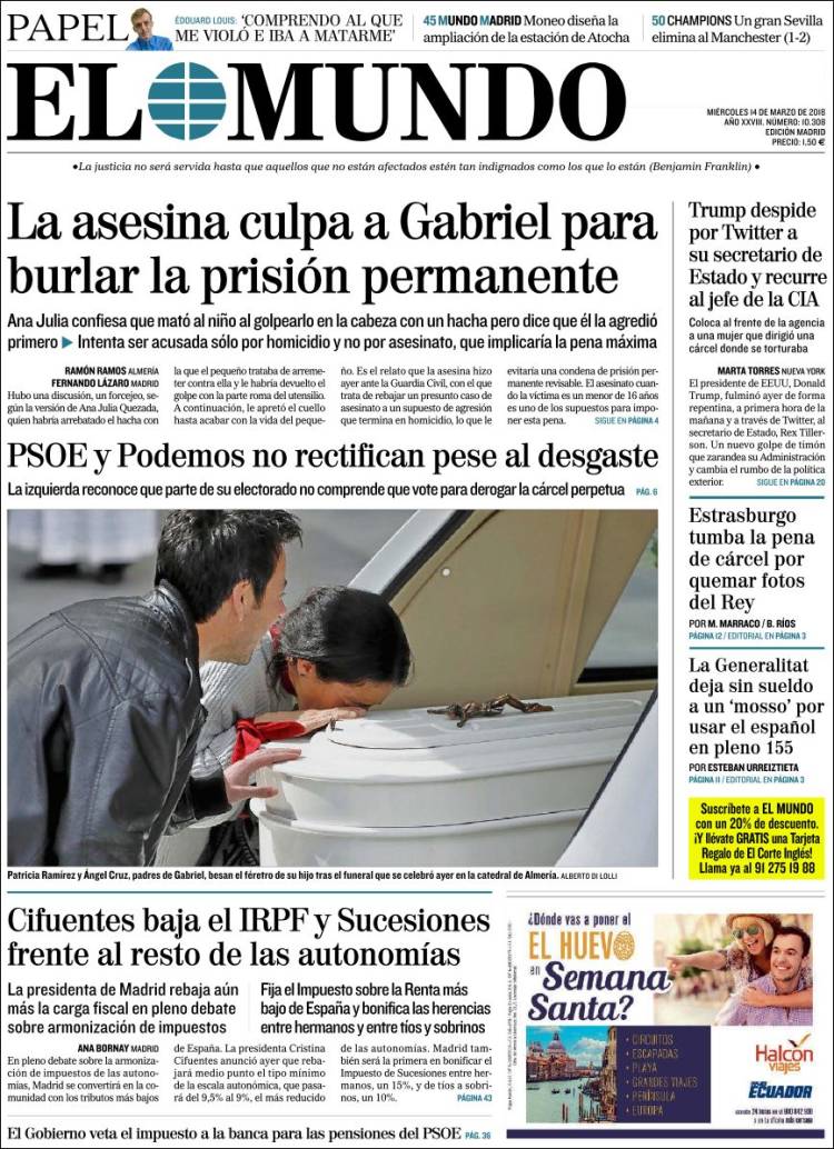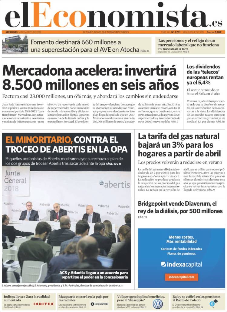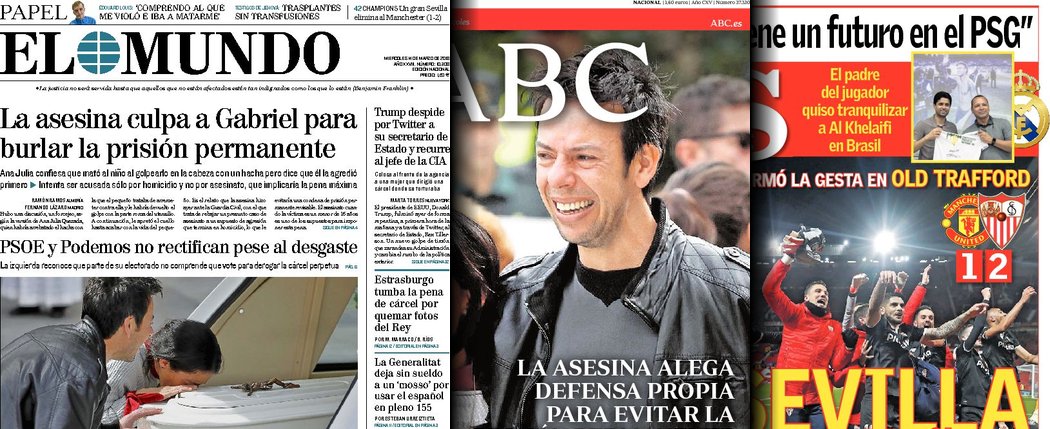 Portadas de los diarios El Mundo, El País, ABC, La Razón, La Vanguardia, Cinco Días, El Economista, Marca, As, Mundo Deportivo y Sport.