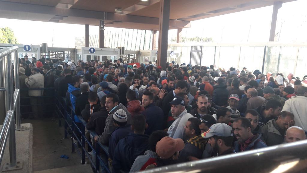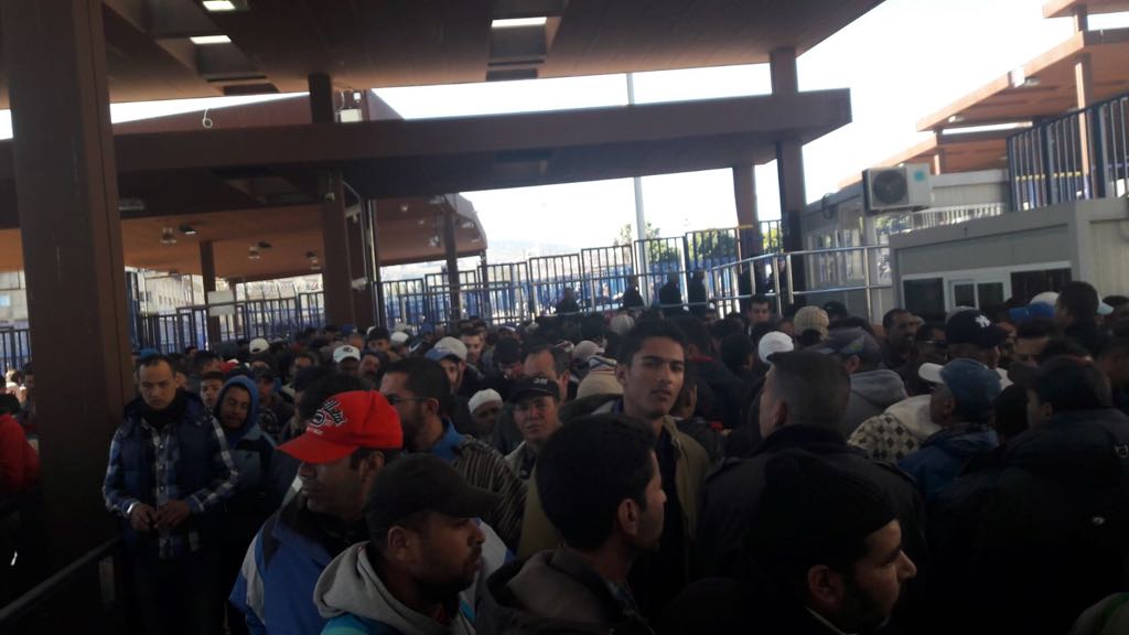 Cinco agentes de la Policía controlan el paso de 1500 marroquíes cada hora. La Guardia Civil no da abasto controlando las mercancías.