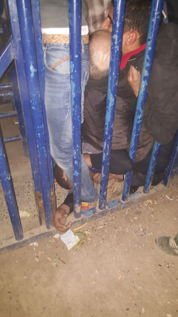 La situación en el paso fronterizo es de tal gravedad que los que intentan cruzarlo se ven aplastados por la muchedumbre contra las vallas.