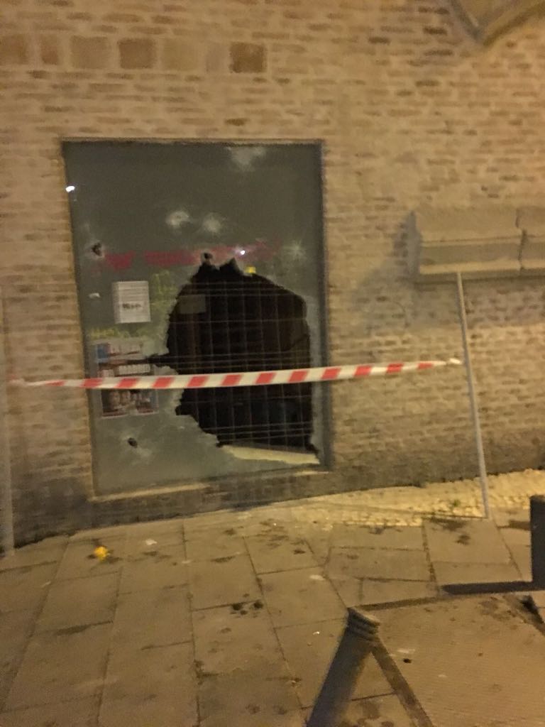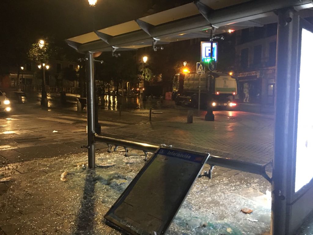 El mobiliario urbano se ha visto seriamente dañado. En la imagen, la marquesina de una parada de autobús completamente reventada