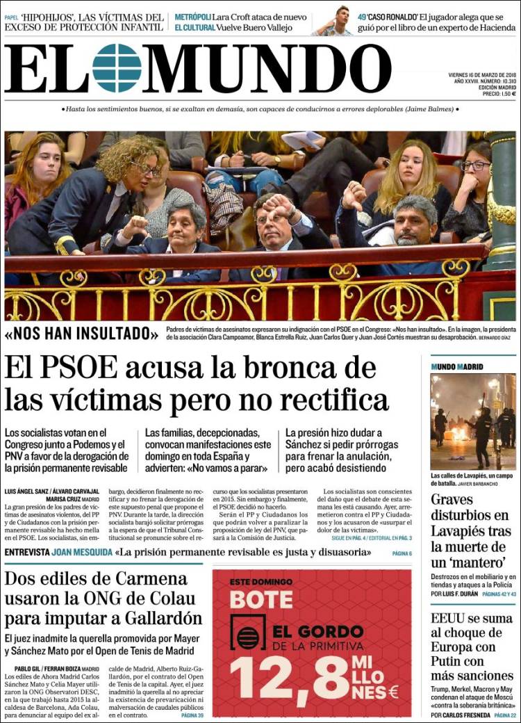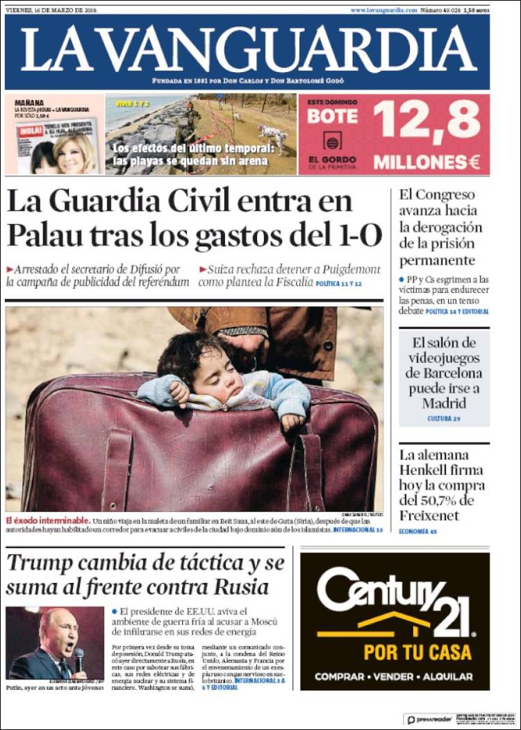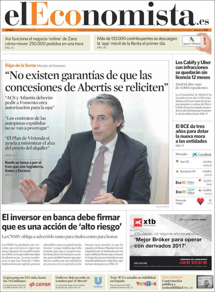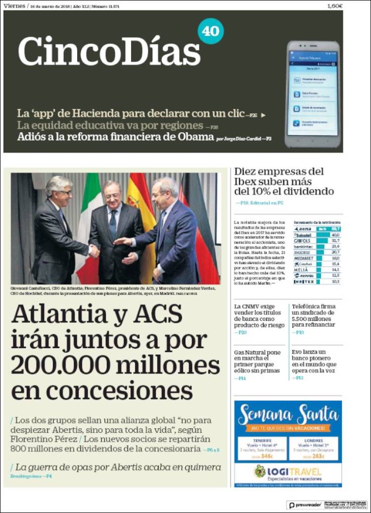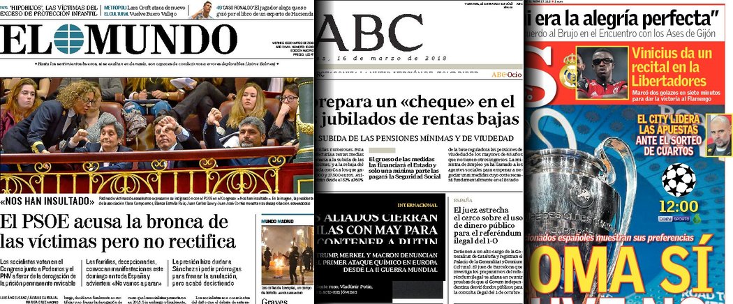 Portadas de los diarios ABC, As, Cinco Días y La Vanguardia.