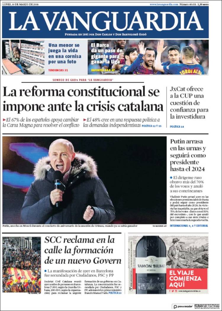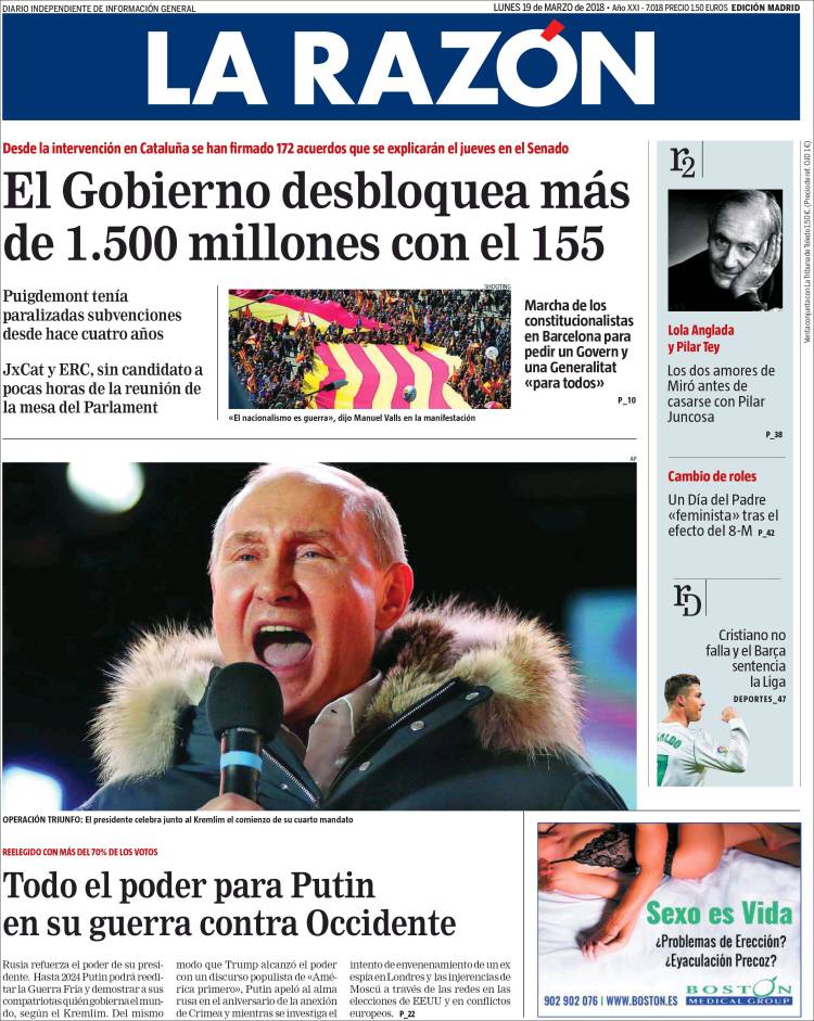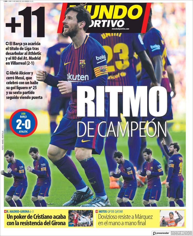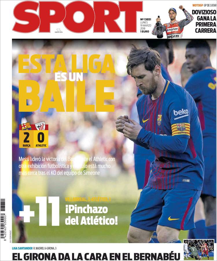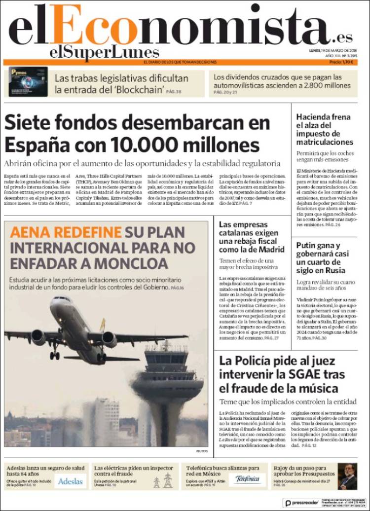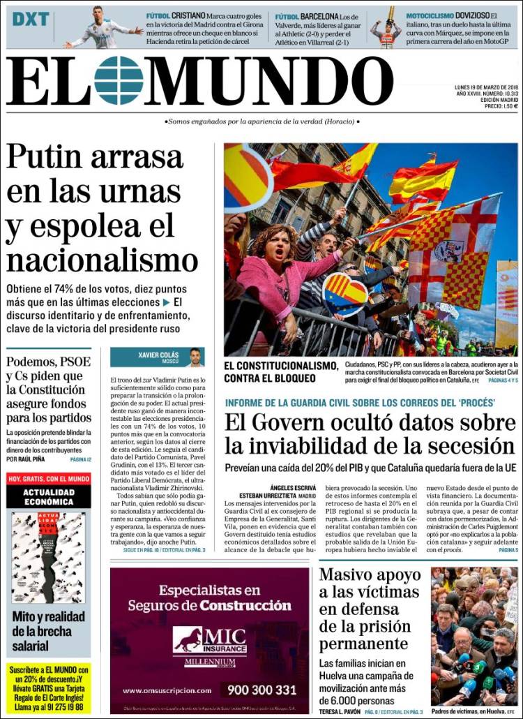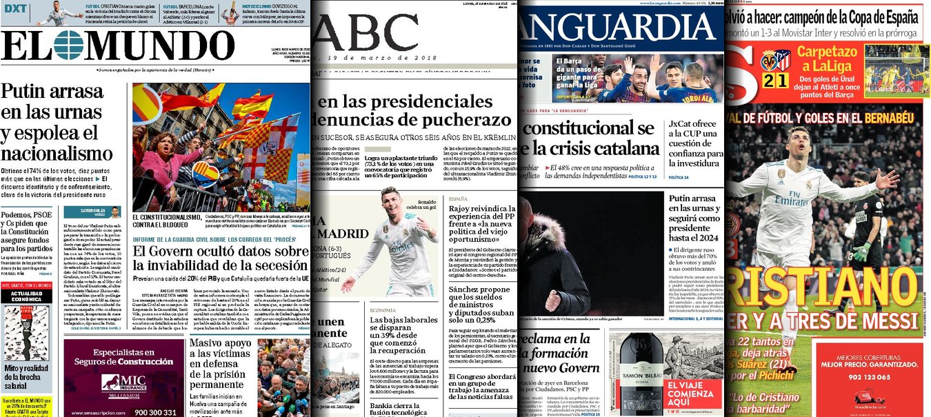 Portadas de los diarios El Mundo, El País, ABC, La Razón, La Vanguardia, El Periódico, Cinco Días, El Economista, Marca, As, Mundo Deportivo y Sport.