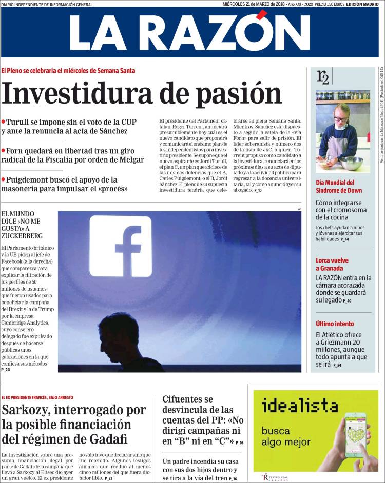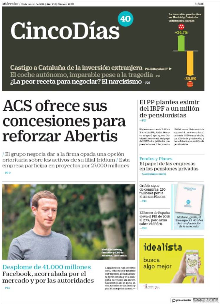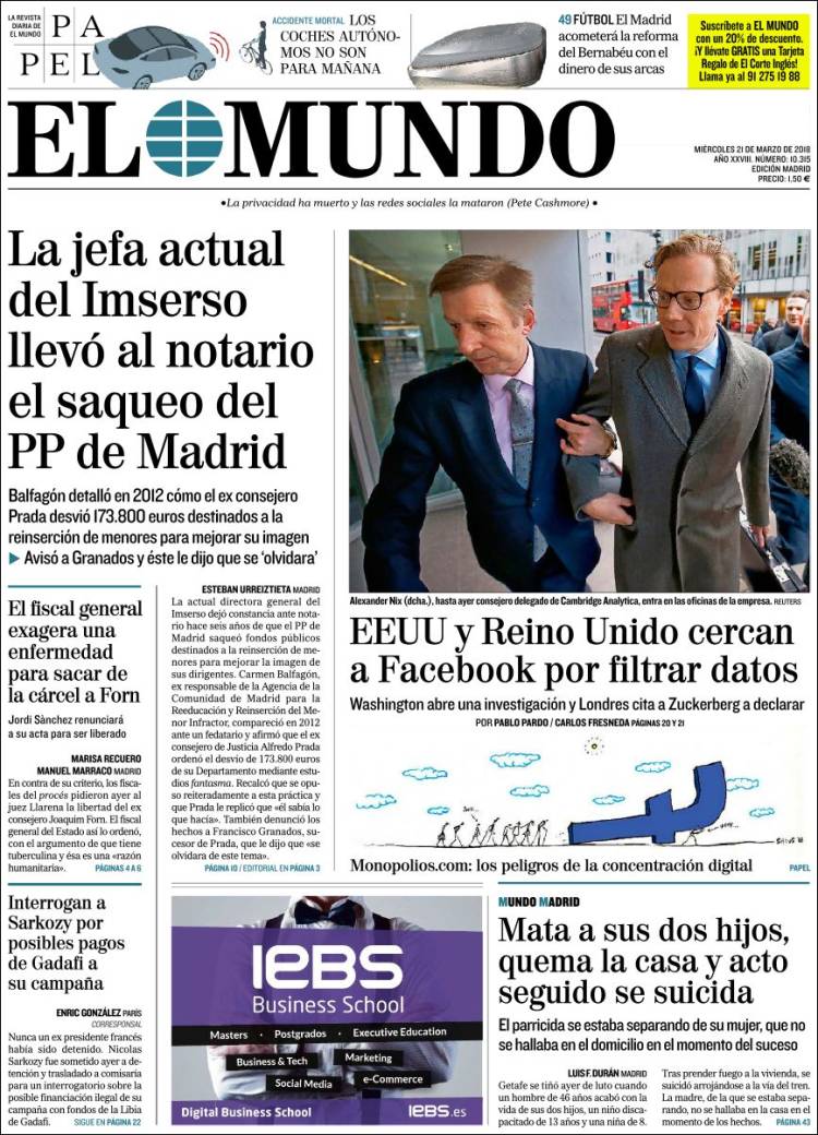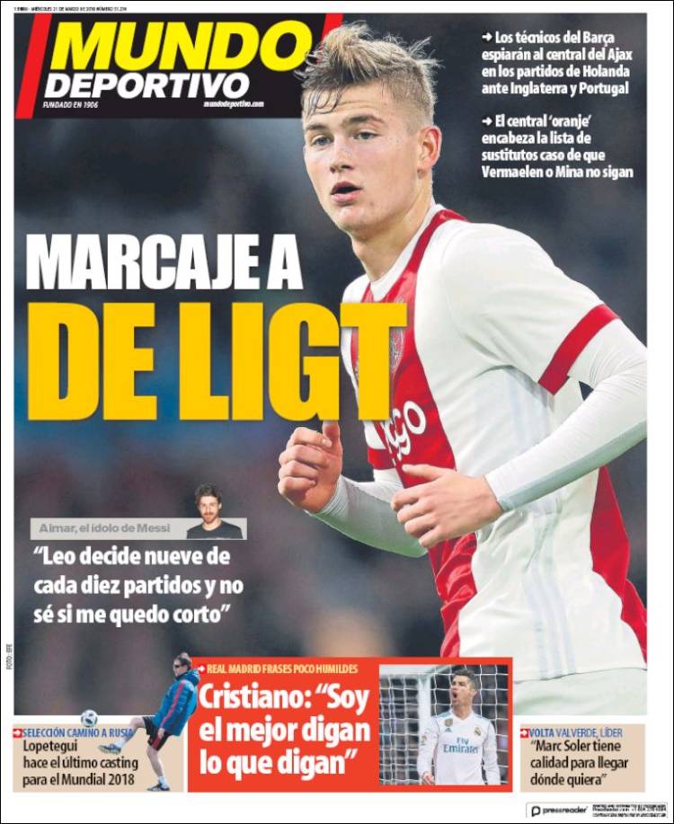 Portadas de los diarios El Mundo, El País, ABC, La Razón, La Vanguardia, El Periódico, Cinco Días, El Economista, Marca, As, Mundo Deportivo y Sport.
