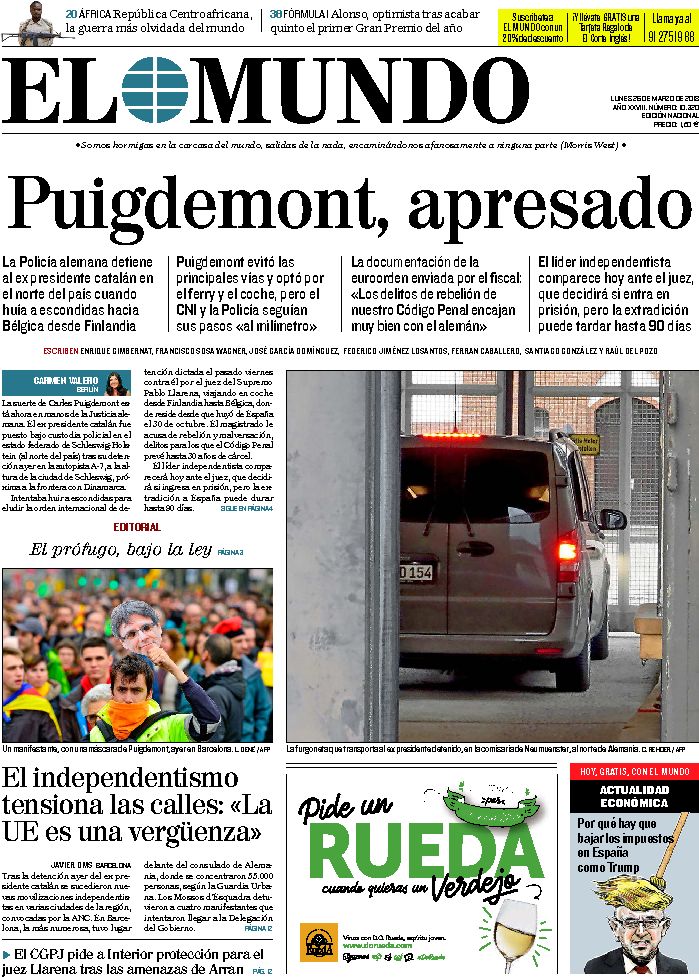 Portadas de los diarios ABC, As, Cinco Días y La Vanguardia.