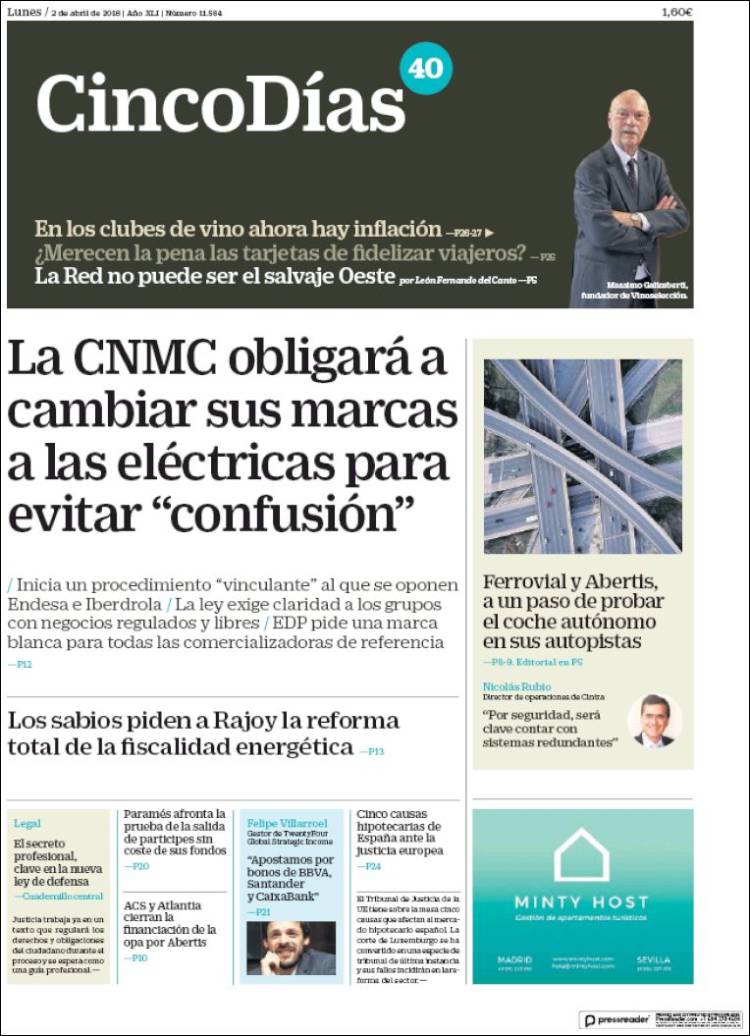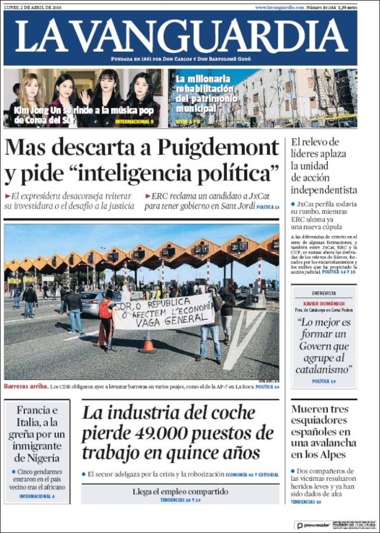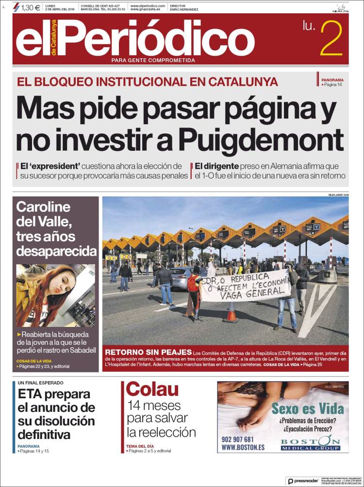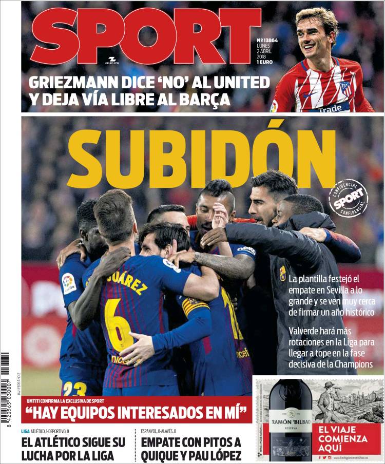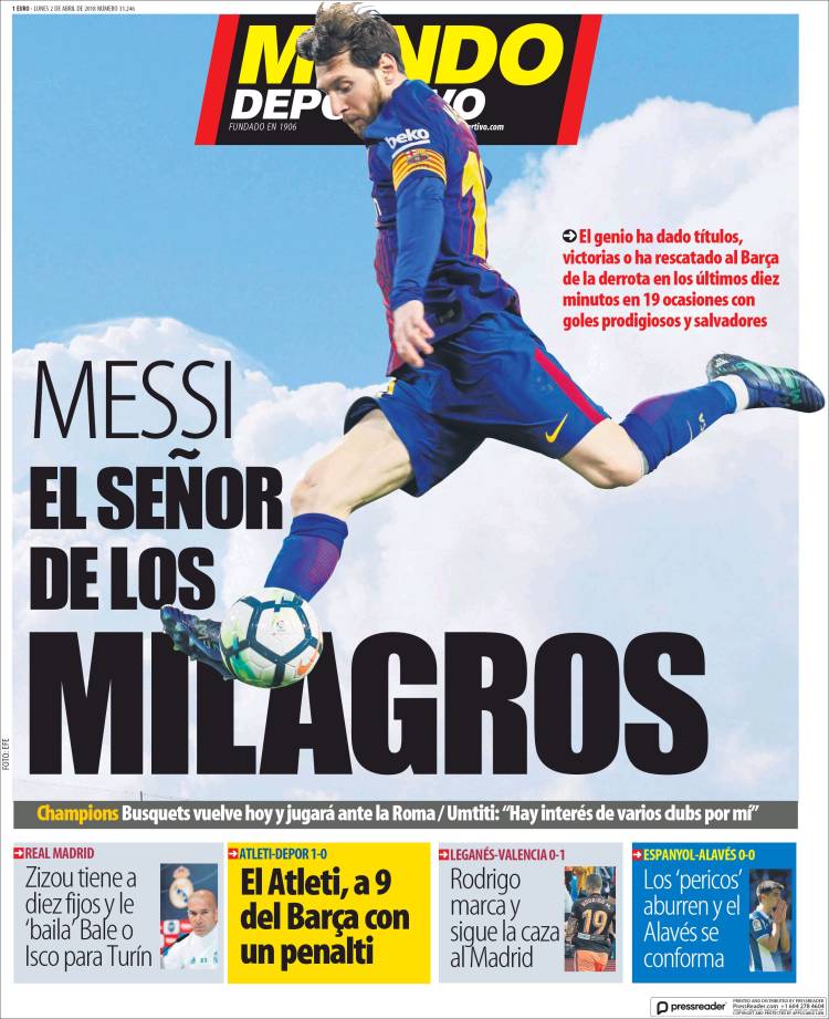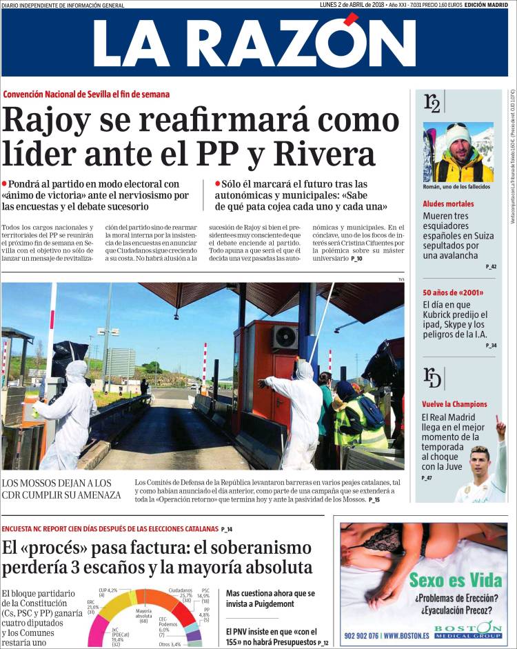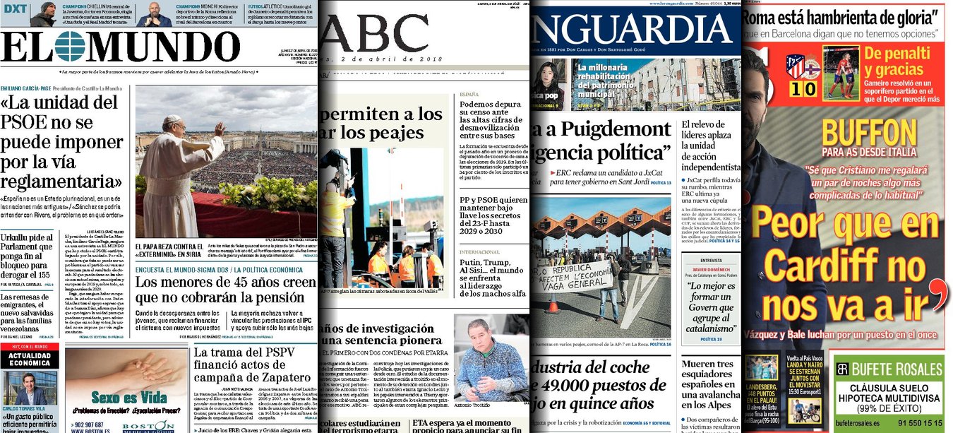 Portadas de los diarios El Mundo, El País, ABC, La Razón, La Vanguardia, El Periódico, Cinco Días, Marca, As, Mundo Deportivo y Sport.