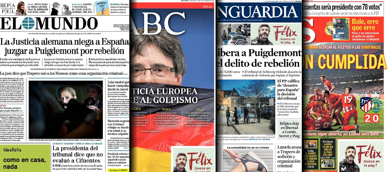 Portadas de los diarios El Mundo, El País, ABC, La Razón, La Vanguardia, El Periódico, Cinco Días, El Economista, Marca, As, Mundo Deportivo y Sport.